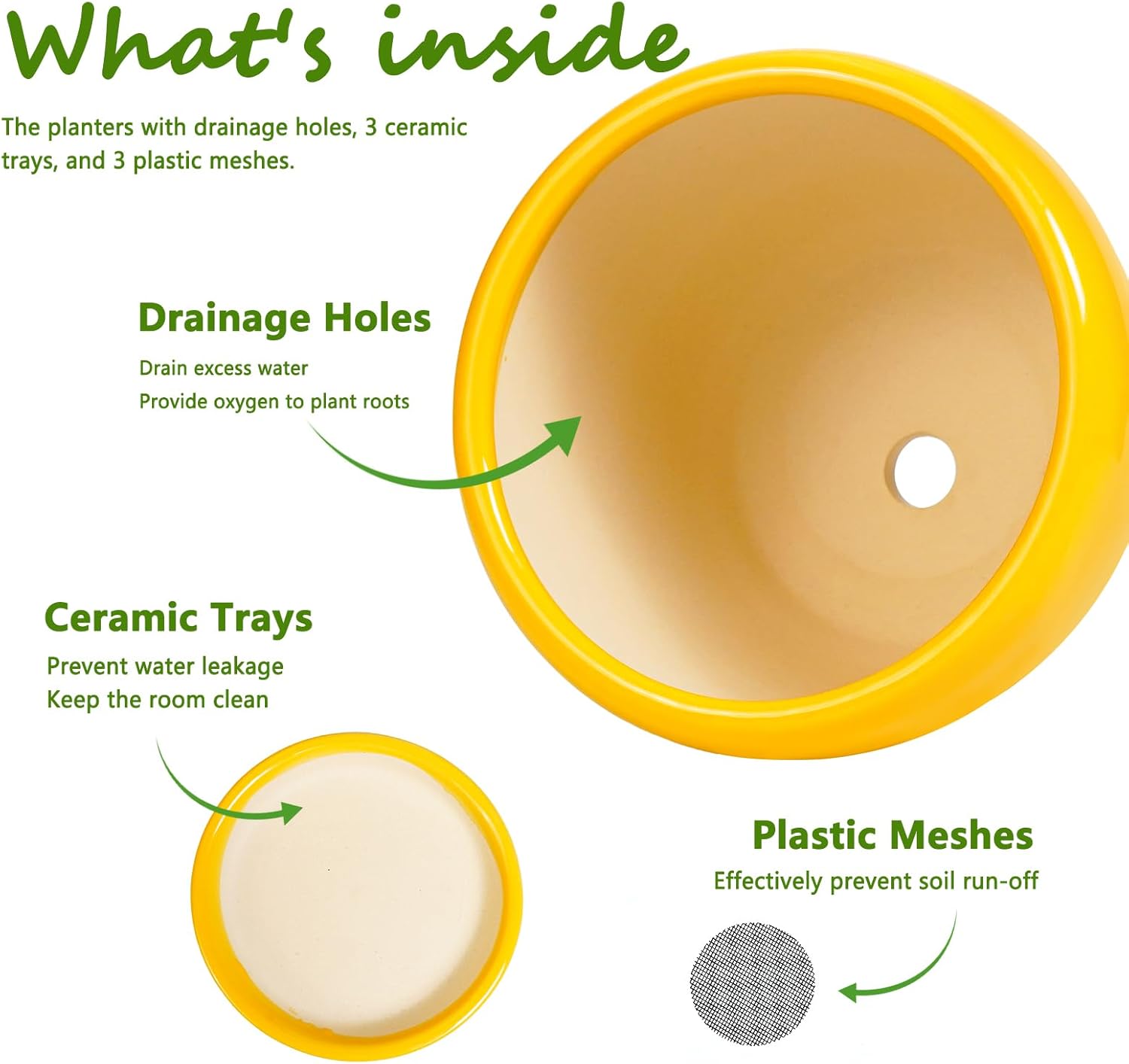 - Suitable for Plant Growth: The inside of the yellow planters are not glazed, which not only facilitates air circulation but also makes it easier for water to evaporate from the soil surface, reducing the risk of plant root rot