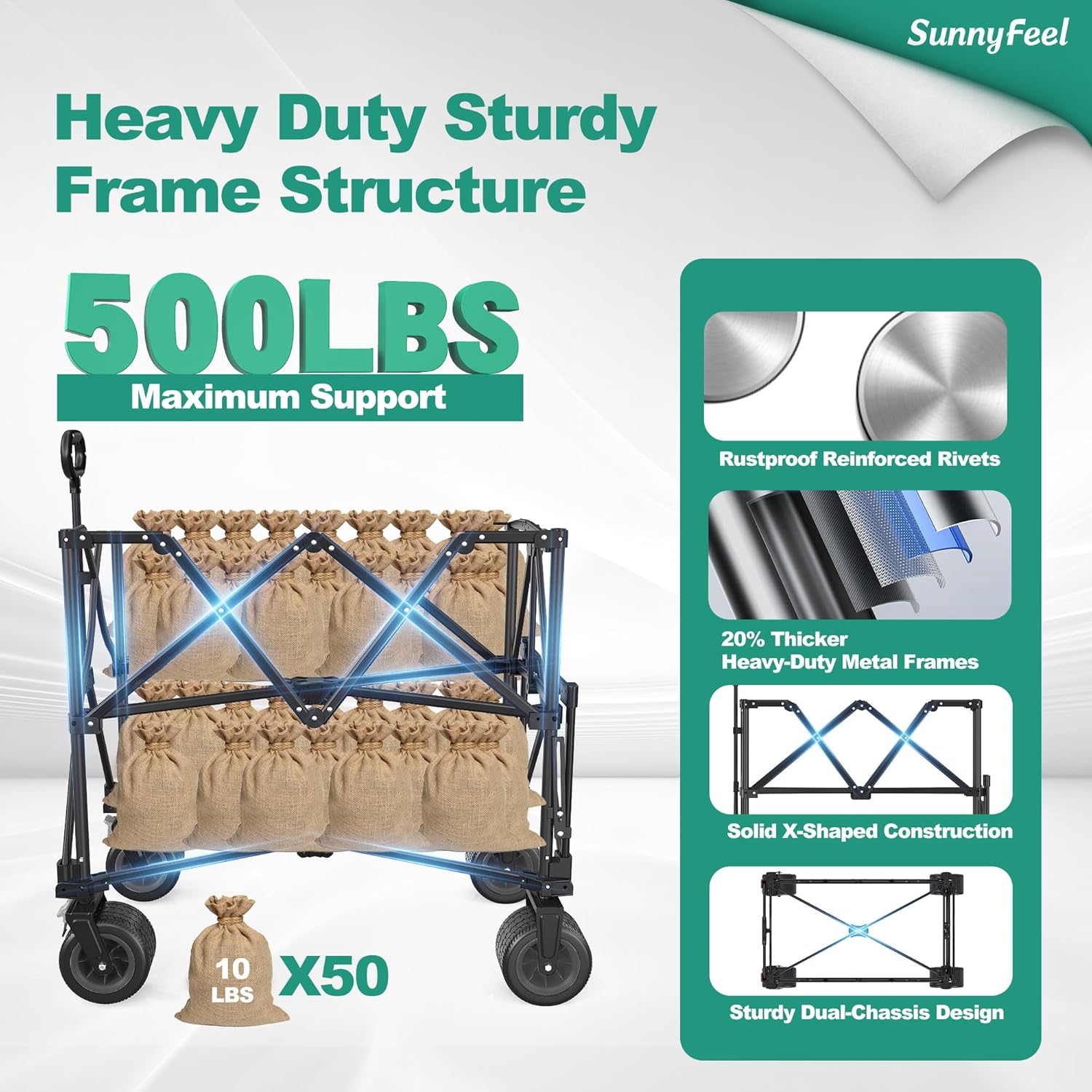 - Discover the ultimate solution for transporting your goods with convenience and style. Our Double Decker Collapsible Wagon Cart is a must-have tool for garden enthusiasts, beach lovers, and picnic aficionados alike. Boasting a significant 500 LB carrying capacity, this versatile wagon is ready to handle all your hauling needs.