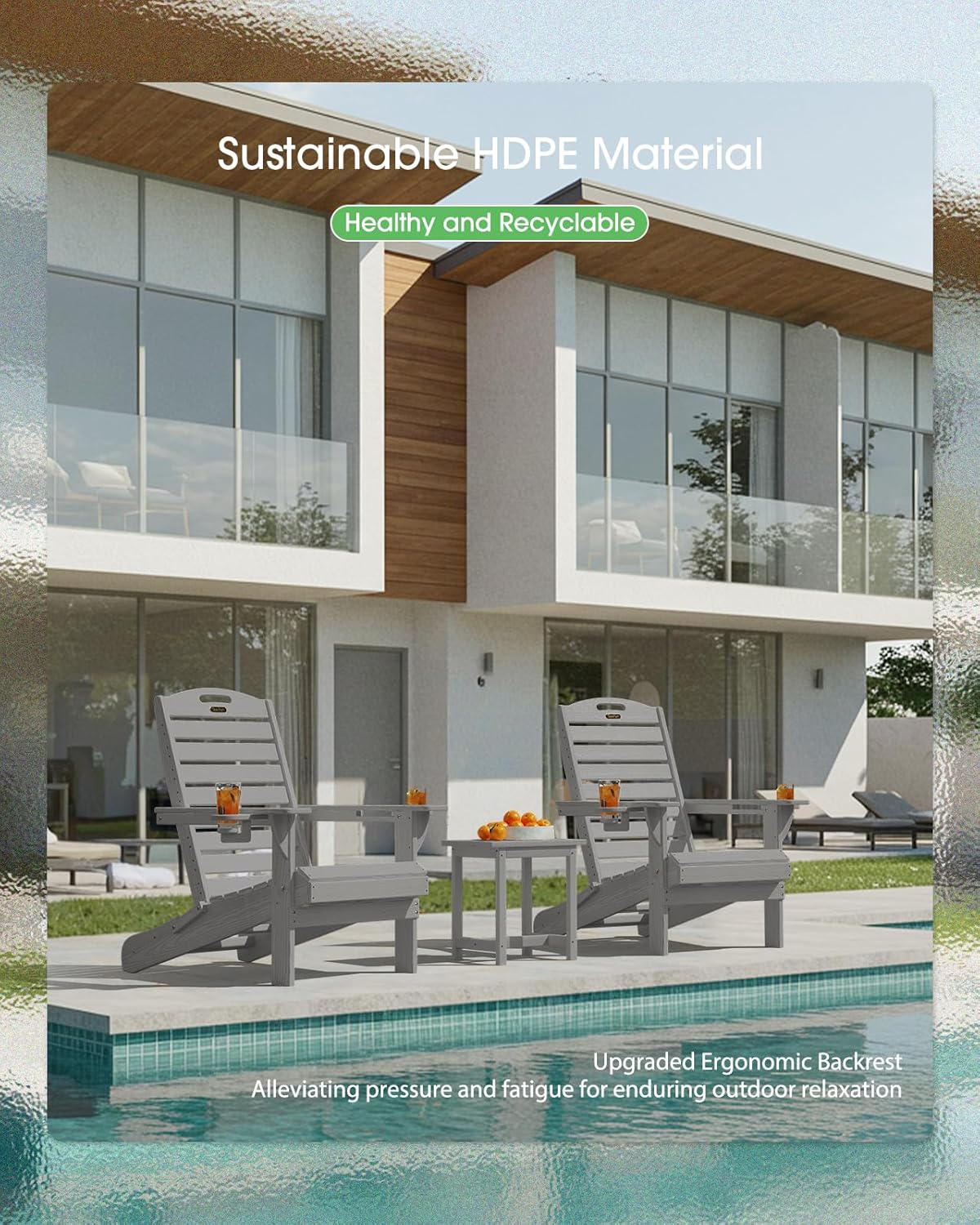 - Enhanced Backrest Design: We’ve upgraded our adirondack chairs to a one-piece backrest that outperforms traditional straight designs. This innovative shape contours perfectly to your back, alleviating spinal pressure and fatigue for enduring comfort