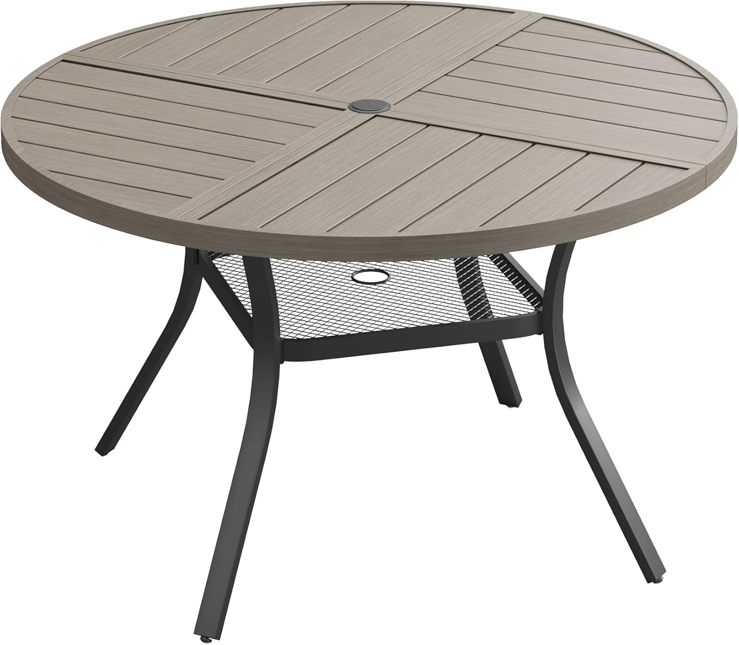 DIFY 40.6" Round Outdoor Patio Dining Table for 4, All-Weather Metal Steel Slatted Patio Table with 1.57" Adjustable Umbrella Hole, for Lawn Garden Porch Backyard, Grey Wood-Like