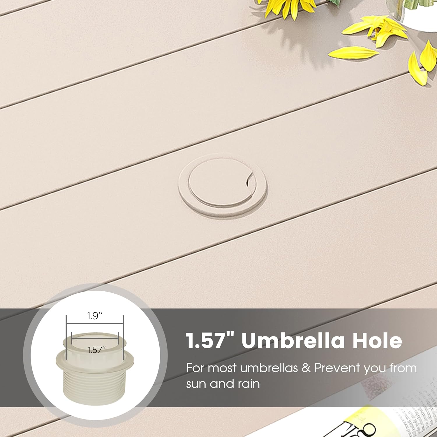 DIFY 60" Round Outdoor Patio Dining Table for 8-10, Metal Patio Table with 1.57" Adjustable Umbrella Hole, All-Weather Dining Furniture Table for Backyard Lawn Garden, Cream