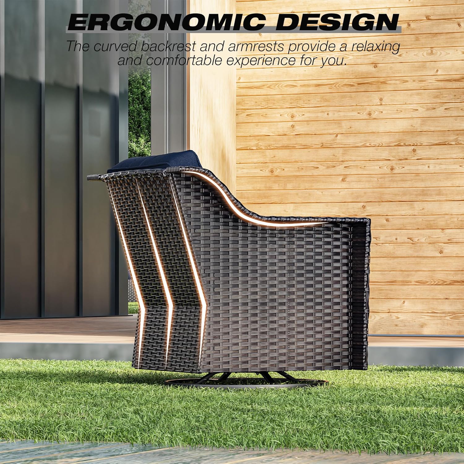 - Ergonomic Design: Our outdoor wicker chairs are upgraded to a larger size to bring you more extraordinary comfort. The ergonomic curved backrest and wider armrests provide better support for your neck and arms
