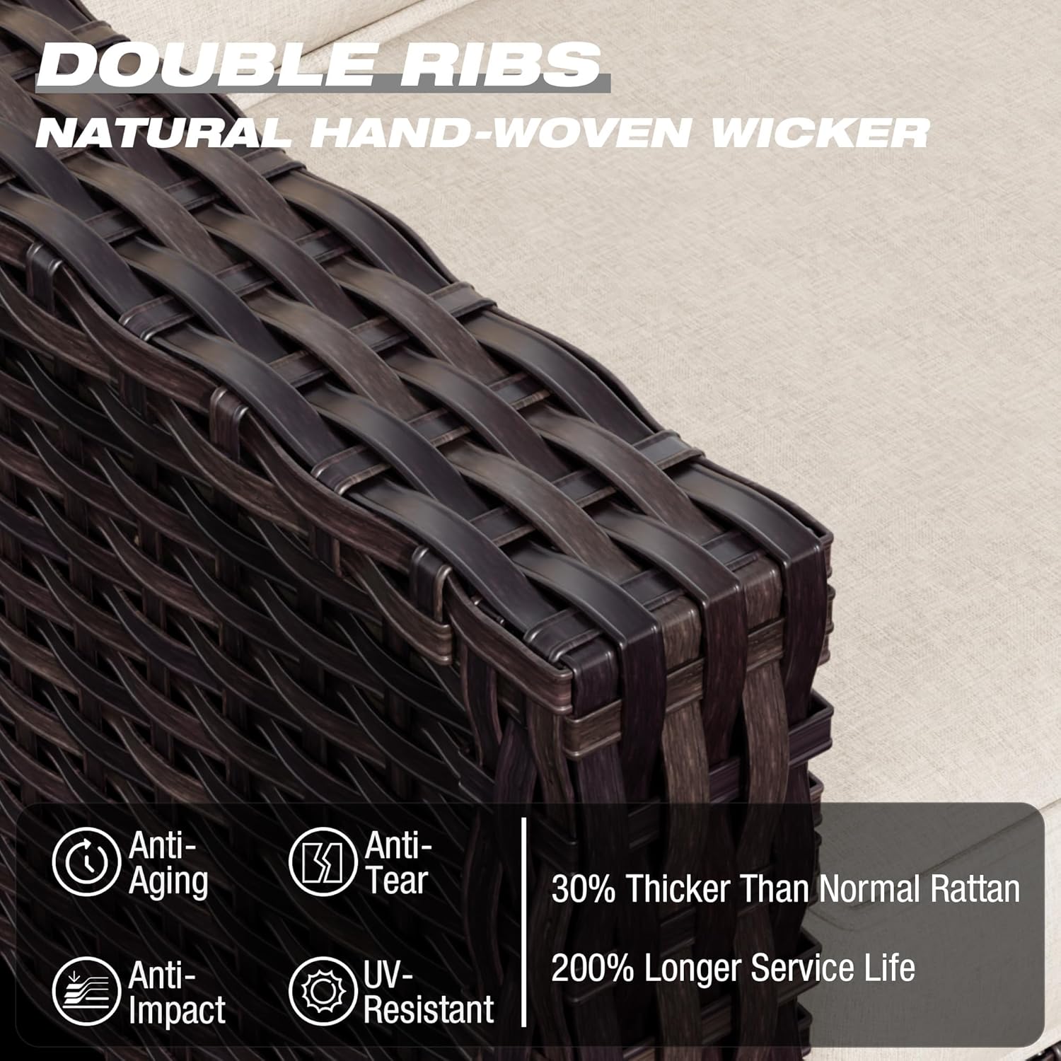 - Premium Frame & Wicker: The Patio wicker chair made of high-quality handwoven wicker rattan, durable and not break easily for all-weather use, frame made of powder coated steel frame ensures good strength and stability