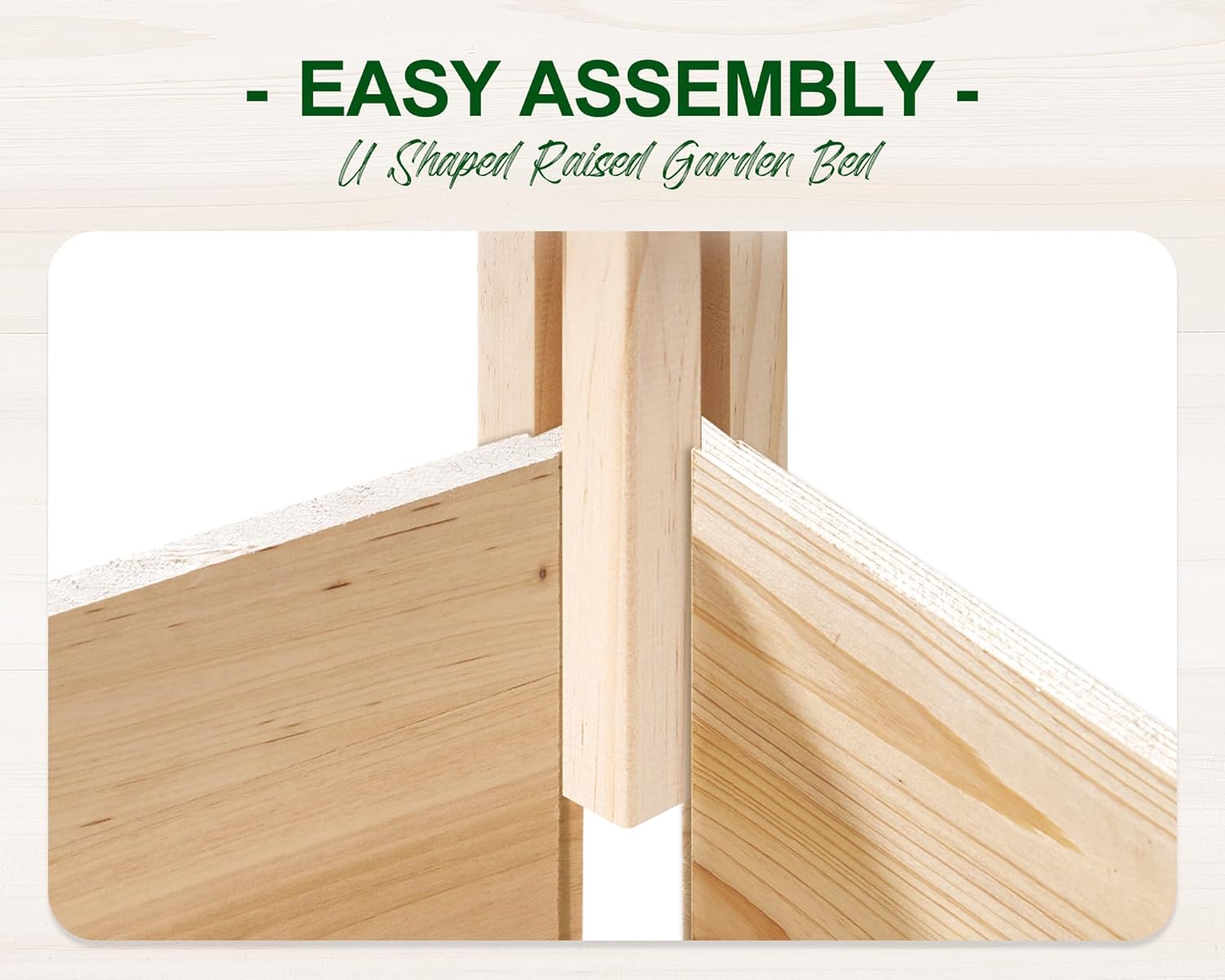 AMERLIFE U-Shaped Raised Garden Bed with Deer Proof Fence, 7.5Wx15Dx6H Outdoor Wooden Raised Garden Bed Planter with 19" Depth Planter Box