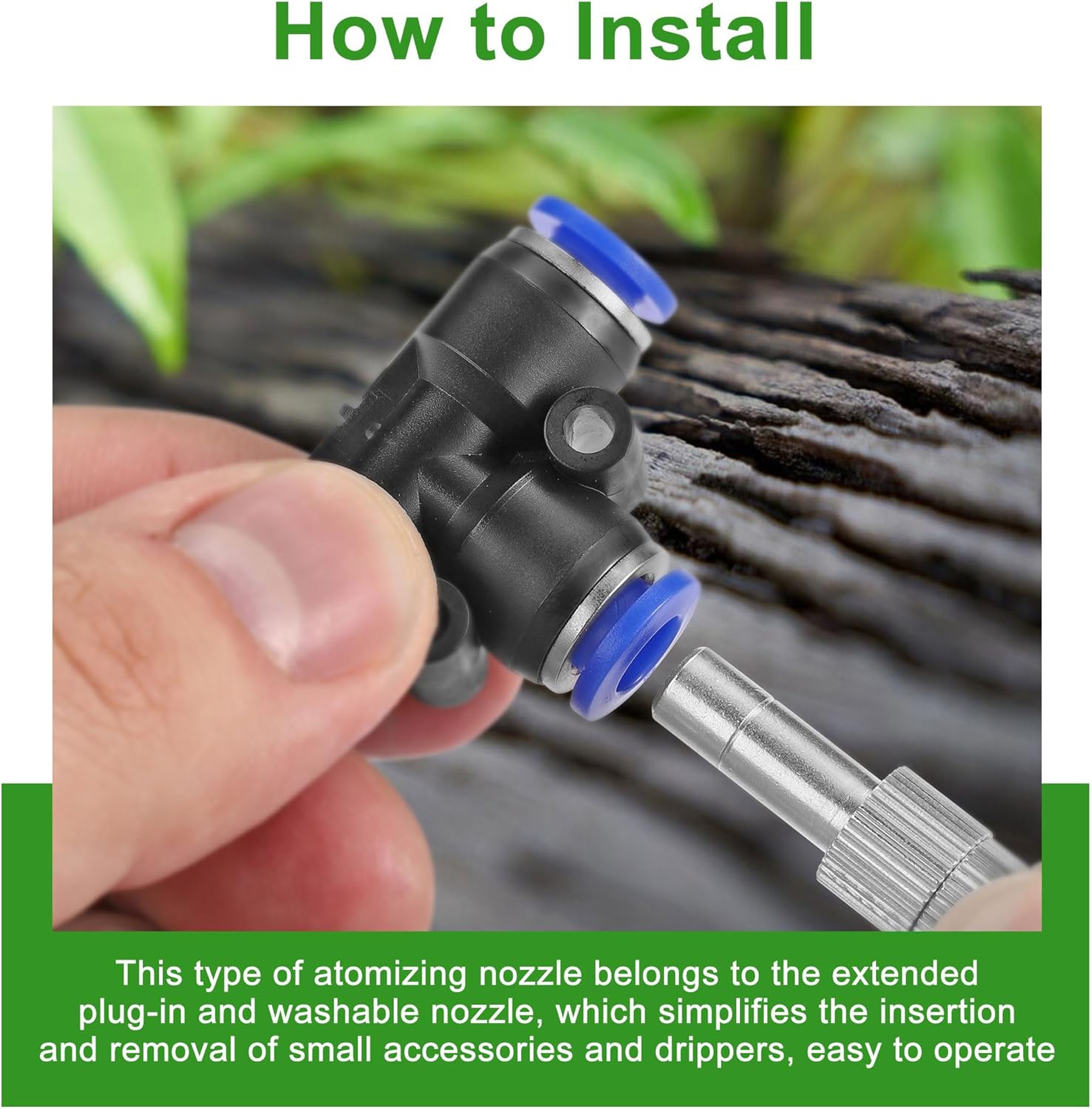 - 【Easy to Install】: It is very easy to install and dissemble. Just directly put the mister nozzles with filter mesh into 1/4" misting nozzle tee, and then connect the misting nozzle tee to the 1/4" tubing pipe easily, no need of heating, more convenient but also faster than traditional dripping irrigation systems. If connected wrong, it can be easily disassembled and reconnected, not easy to fall off and leak.