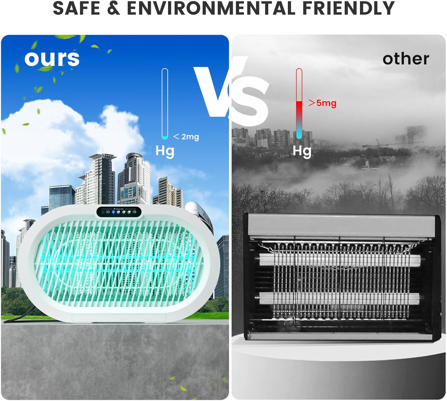 - 【Eye-Safe Light & Eco Protection】Ultra-soft light ensures safe operation around children/pets. Captures mosquitoes through phototaxis and bionic breath. The product kills insects physically and emits no odors or smoke, provide users with long-lasting, safe and effective pest control solutions.
