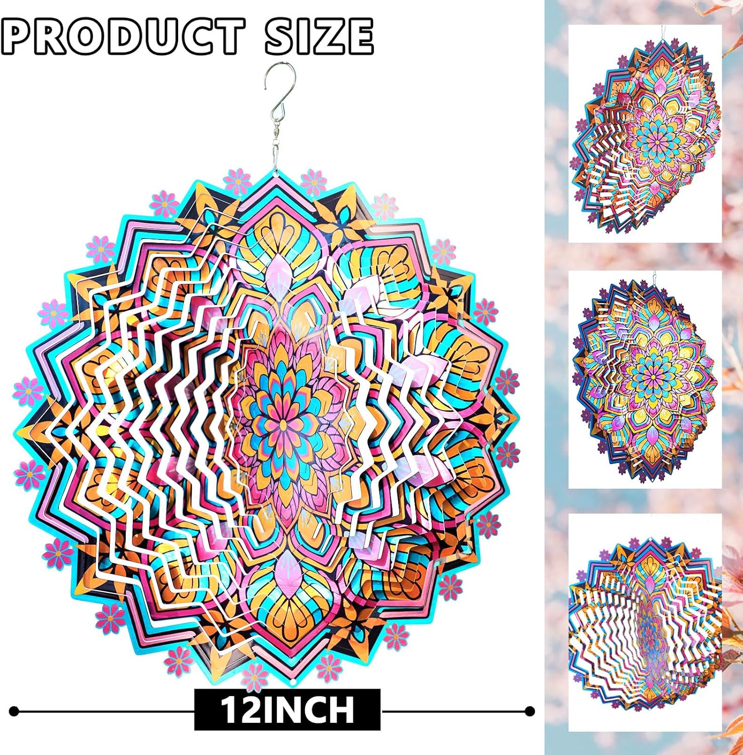 - 【Durable Stainless Steel Wind Spinners】Our 12-inch metal wind spinner is meticulously crafted from high quality stainless steel. It has fascinating layers and intricate details, as well as a special UV-resistant coating. This not only enhances its 3D visual effects, but also ensures that it retains its long-lasting beauty even when exposed to the rigours of the outdoors.