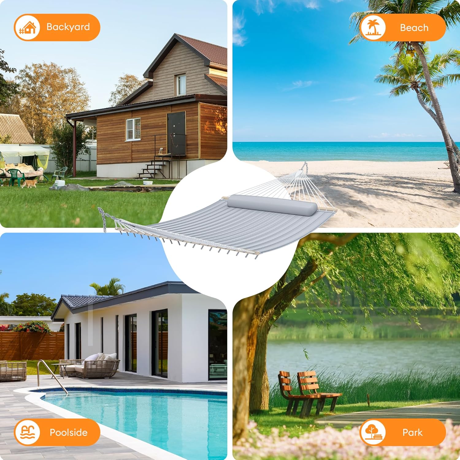 - All Weather Resistant Fabric: The fabric of this outdoor hammock is crafted from a special polyester blend that is not only comfortable but also resistant to fading,water.