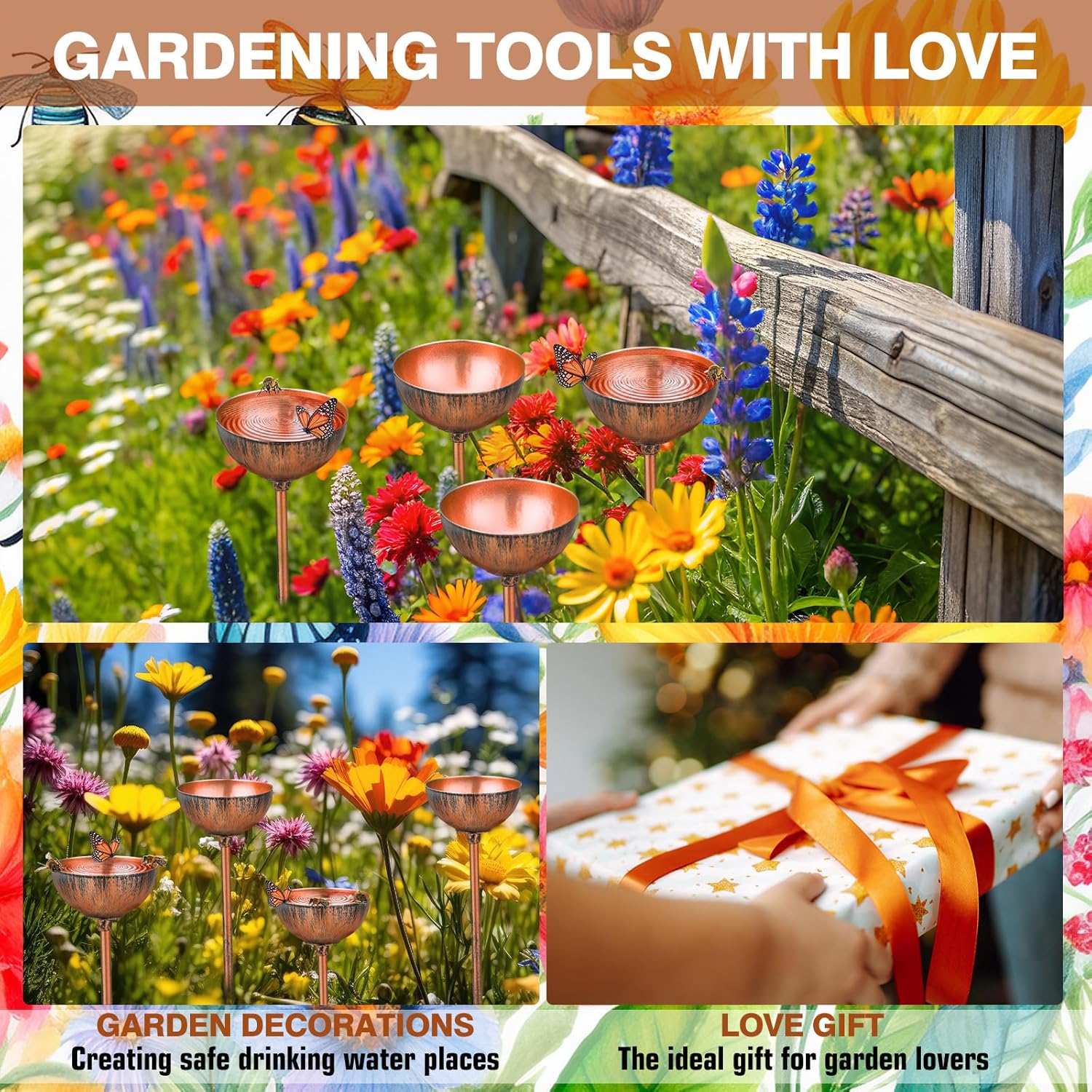 - Retro Design: the 6 bee watering stations are inspired by flowers and can instantly attract small insects such as bees and butterflies; The exterior is made of antique craftsmanship, and the interior of the bowl is charming copper color, which can be well integrated into your garden