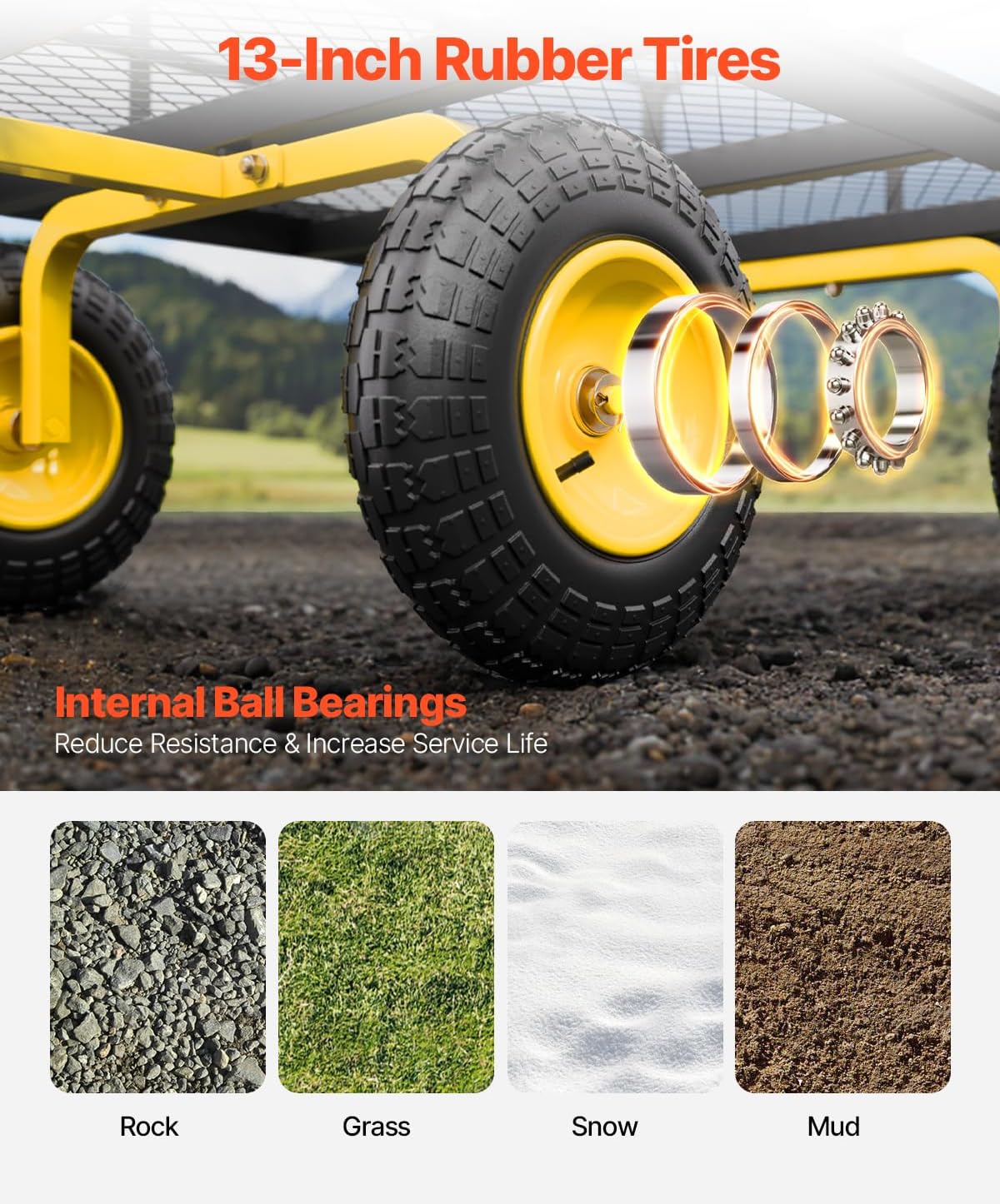 VEVOR 1400 Lbs Steel Garden Cart, Heavy Duty Pullable Garden Wagon Yard Cart, 2 in 1 Outdoor Metal Utility Wagon Yard Trailer with 13" All Terrain Tires, Mesh Removable Sides and 180°Rotating Handle