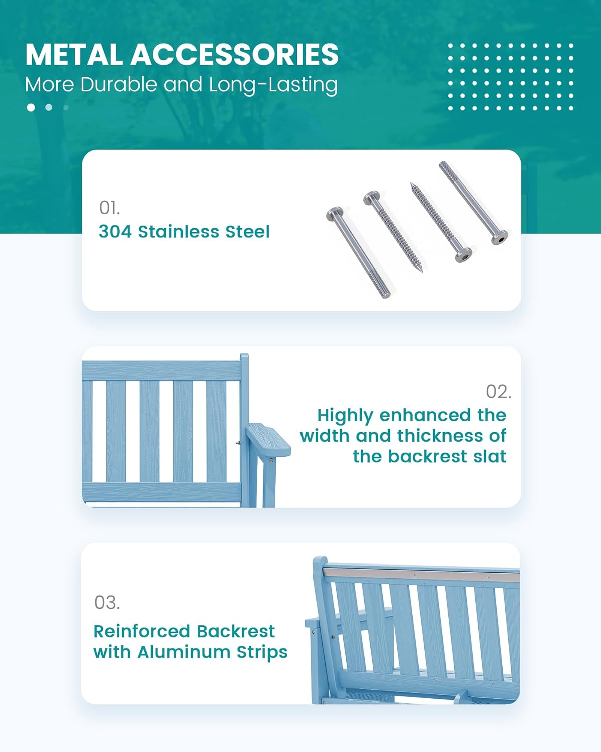 SERWALL Outdoor Bench, HDPE Outdoor Benches Weatherproof, 2-Person Garden Bench with 660 lbs Weight Capacity, Patio Benches for Outdoors, Garden, Porch, Backyard and Park, Light Blue, 6 Pack