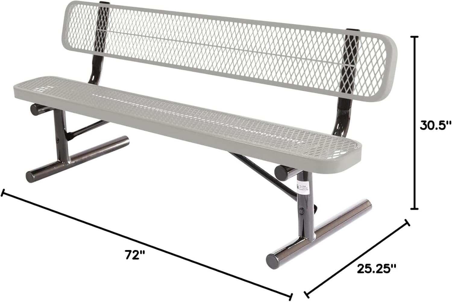 Heavy-Duty Portable Outdoor Bench Thermoplastic Coated, Expanded Metal, Commercial-Grade Seating, Made in America (Portable with Back, 6 Ft, Textured Grey)