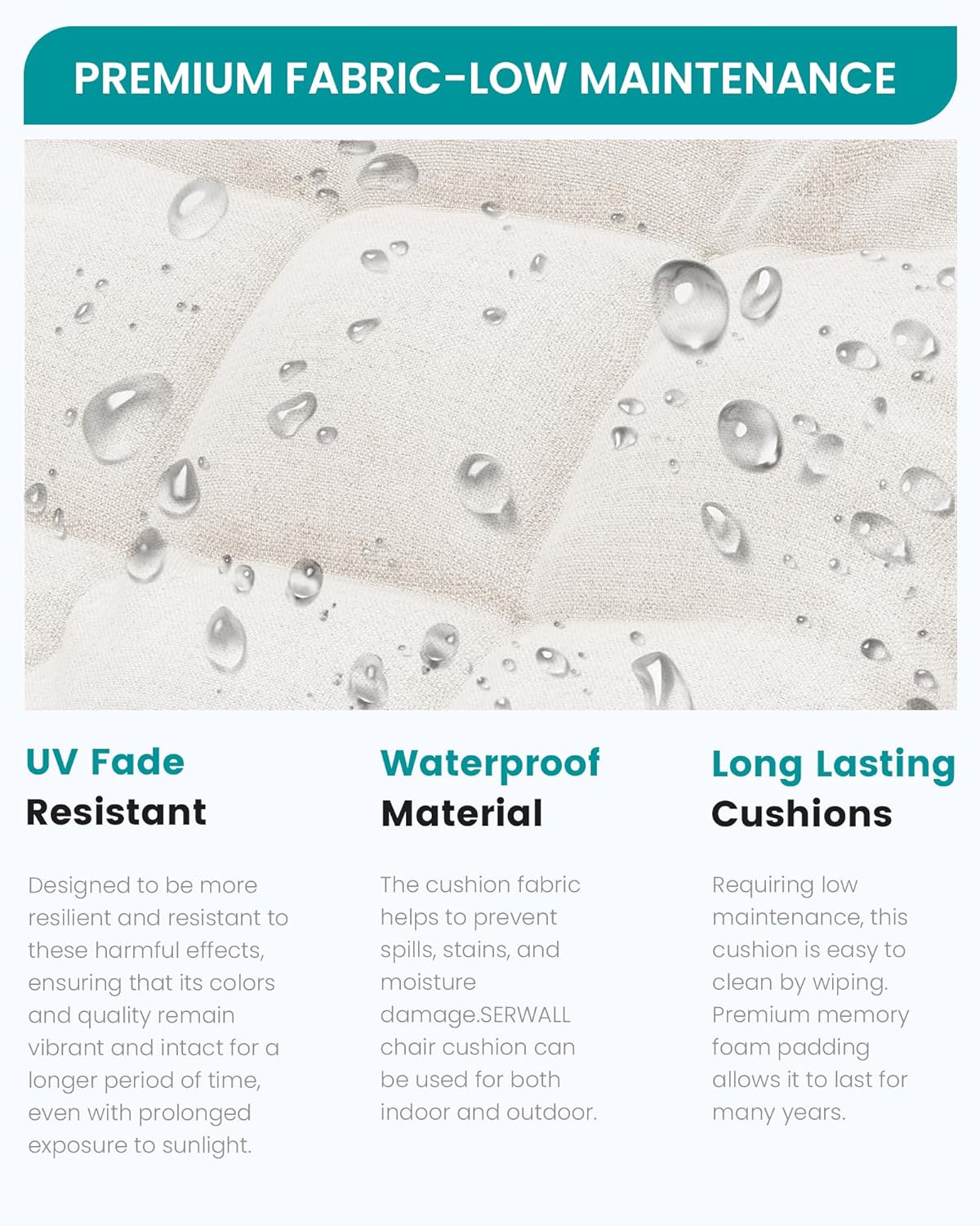 - Comfortable Seating: Crafted with premium memory foam fill, these chair cushions elevate your seating experience to plush levels of comfort. Compatible with all SERWALL Adirondack chairs and rocking chairs, they enhance your relaxation with just one cushion!