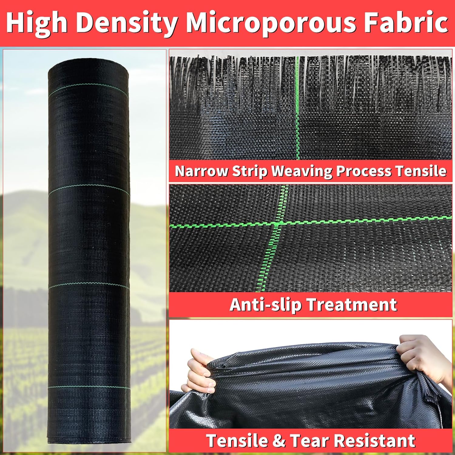 - Narrow Weave Micro-Porous Fabric: Specialized tight weaving creates physical barrier with micro-openings, allowing air/water permeability while resisting weed emergence. Durable structure optimizes root zone conditions for plant growth