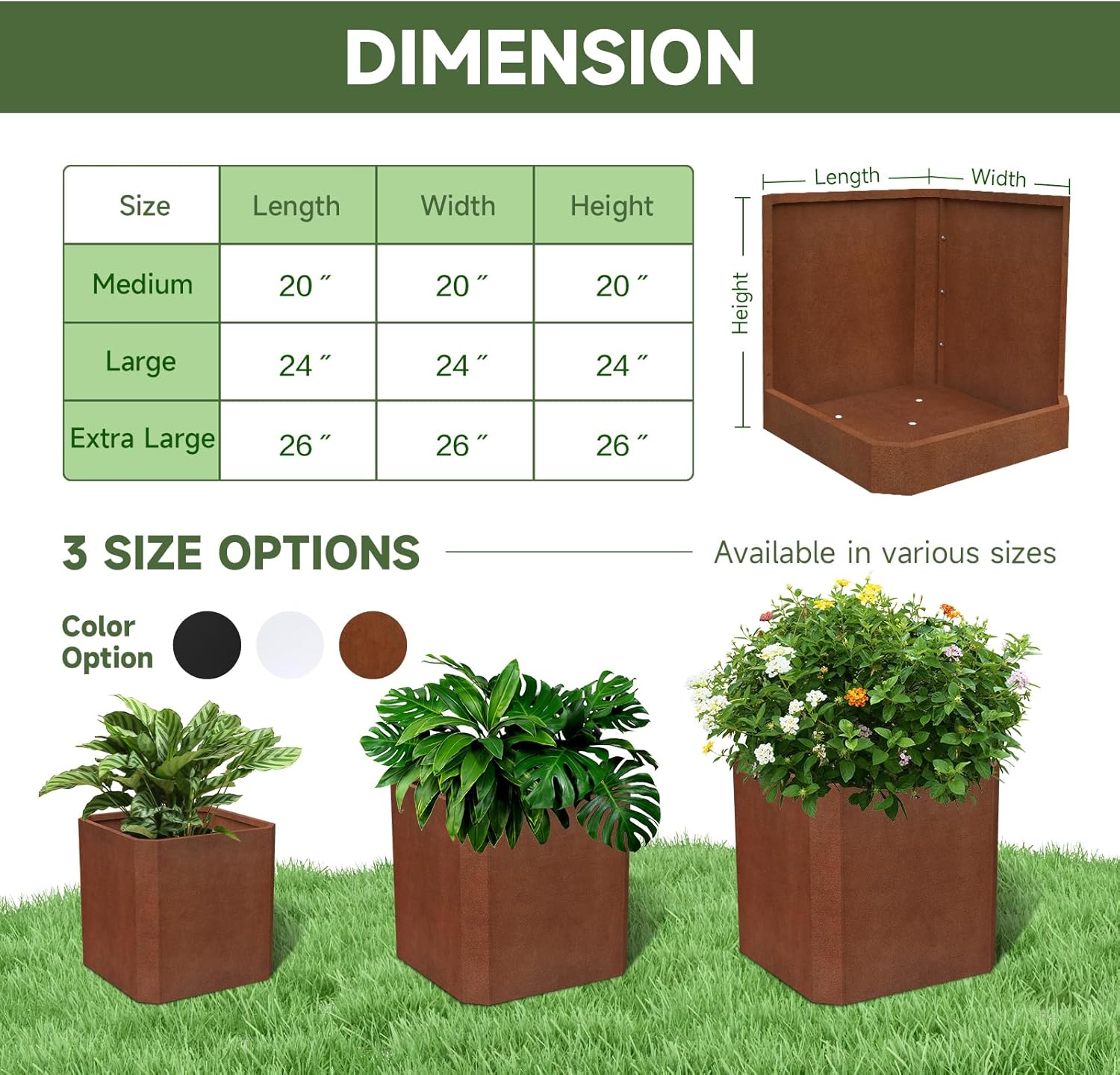 - 【Material And Size】: Corten steel planter box size 20"L x 20"W x 20"H, made of high quality corten steel, strong and durable, anti-deformation and corrosion resistance, 30+ long service life.