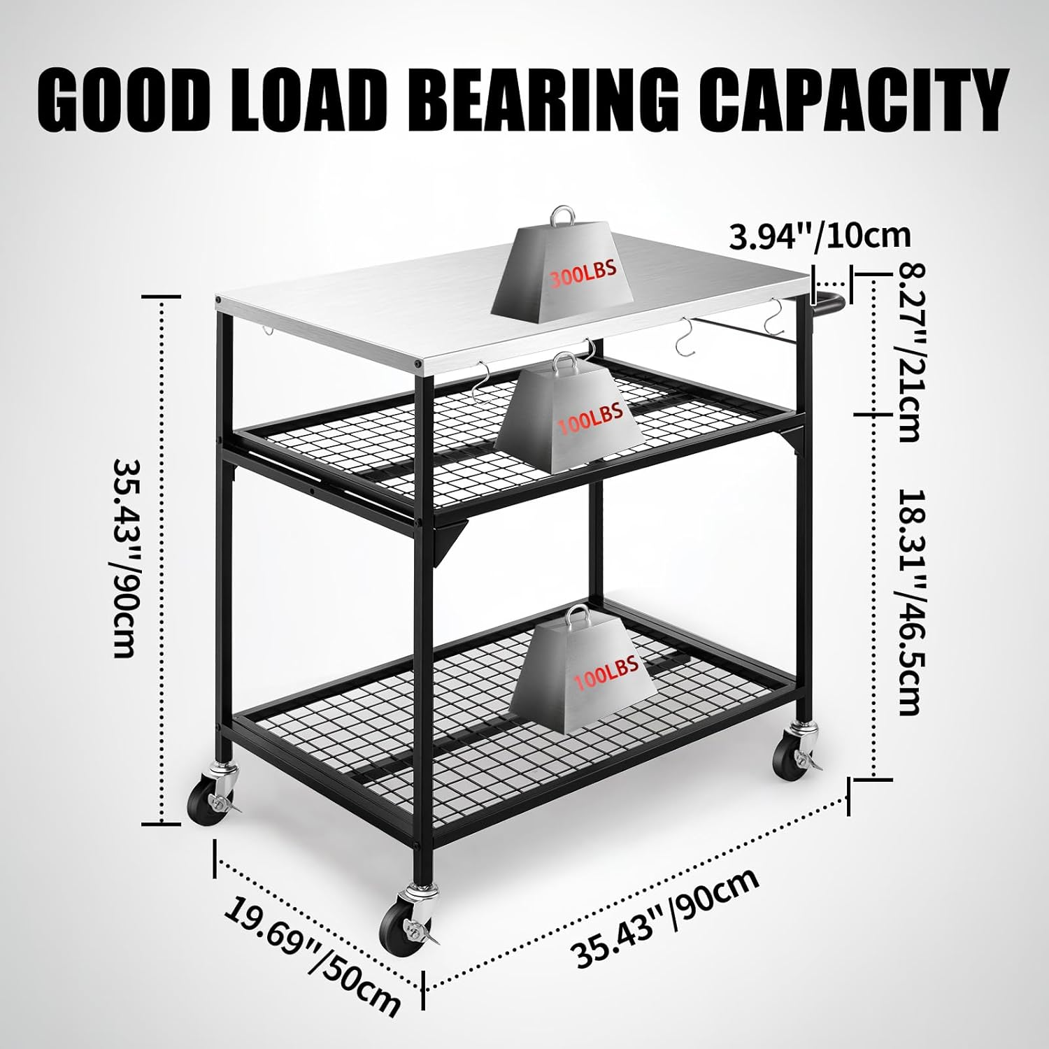 - Spacious Outdoor Prep Station: Tabletop size:35.43" x 19.69".This outdoor grill table has oversize table top surface and side table provide ample work area for food prep,outdoor cooking.The outdoor pizza oven table equipped with multiple storage tools including 8 S-shaped hooks, a tissue holder, a bottle opener,that is convenient for you to organize outdoor necessities.