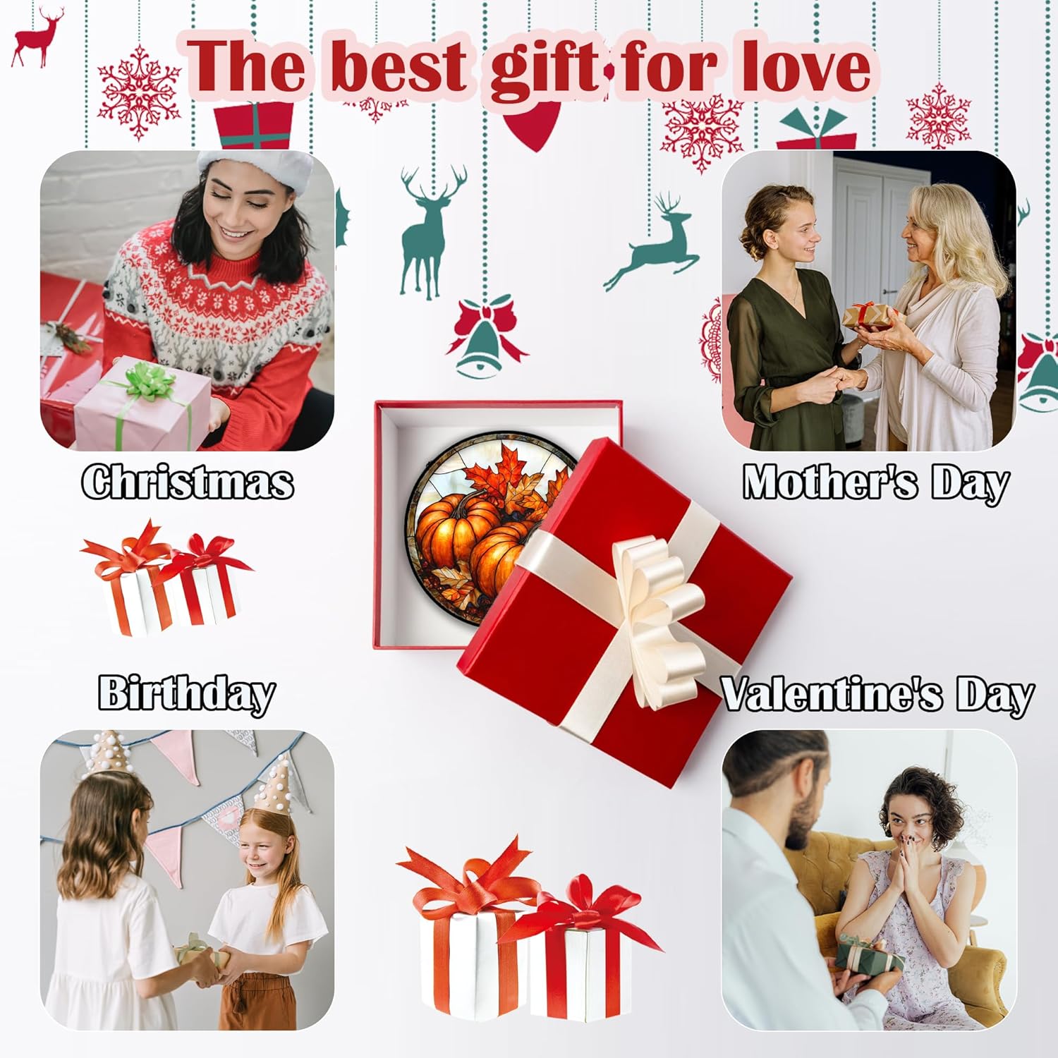 Stained Glass Window Hanging, Pumpkin Maple Leaf Suncatcher for Doors Home Sun Catchers Decoration and Christmas, Mother's Day Birthday Gifts for Women, Men, and Mom 11.8x11.8 in