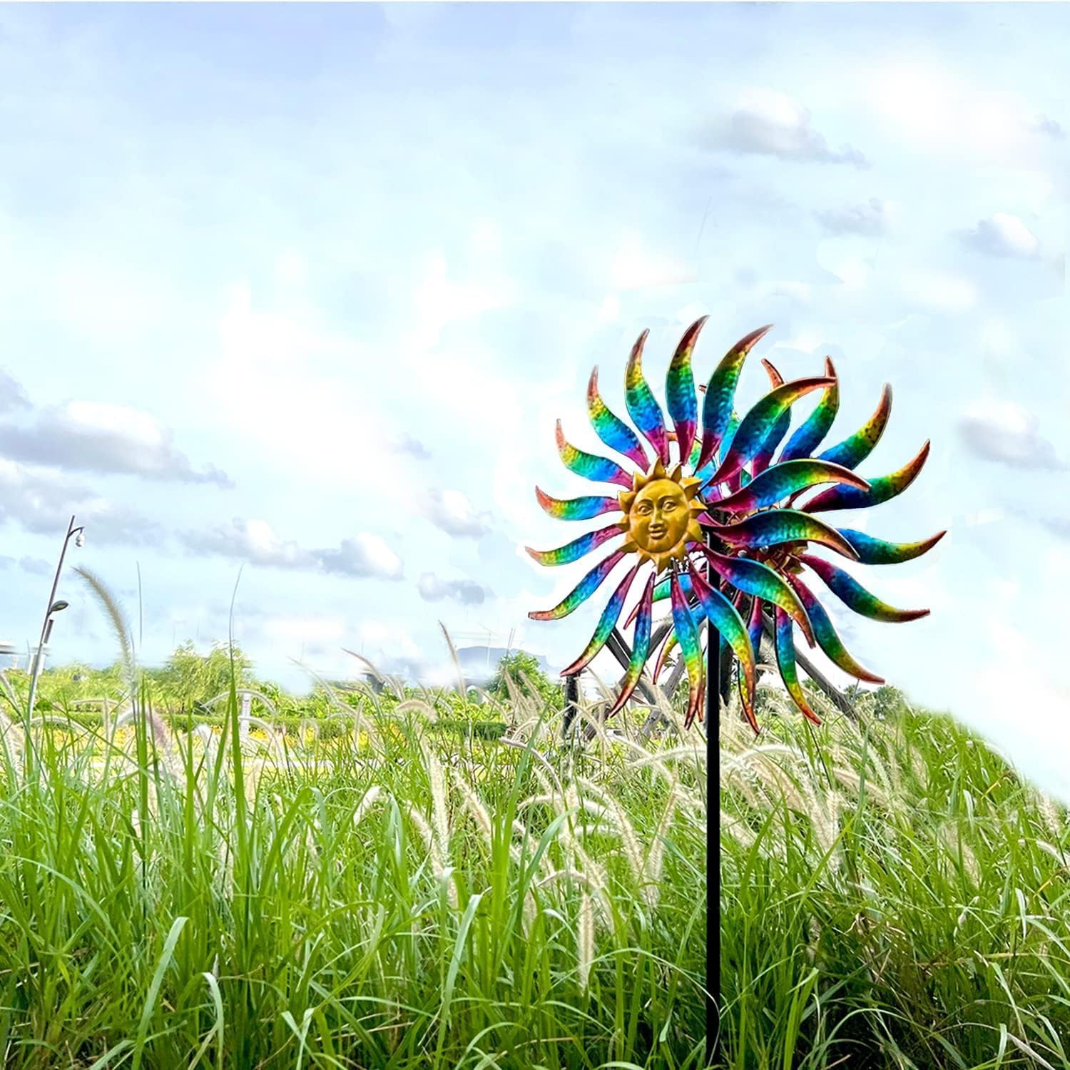 75" Multi-Color Wind Spinners Outdoor Metal Sun Wind Sculptures for Garden, Patio, Yard, Lawn Decorations Double Windmill Spinne