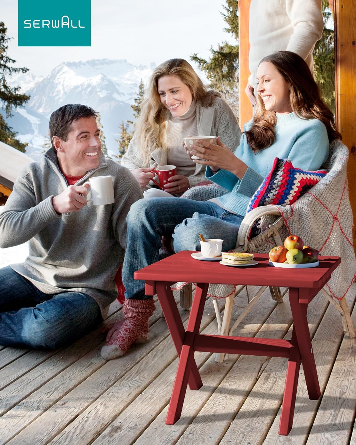 SERWALL Folding Outdoor Side Table Set of 2, Portable Adirondack Side Table, Red