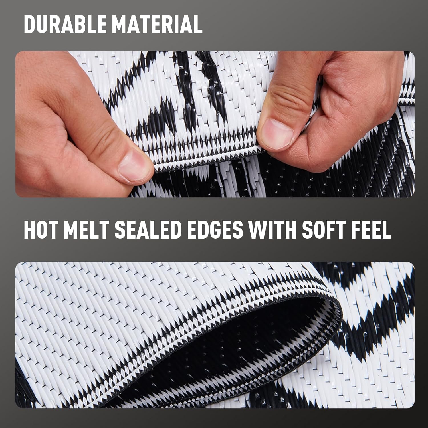 WILDROOTS 6x9 Feet Black and White Plastic Outdoor Rug, Stain Resistant Waterproof Reversible Outdoor Patio Rug, Fade Resistant Camping Rug
