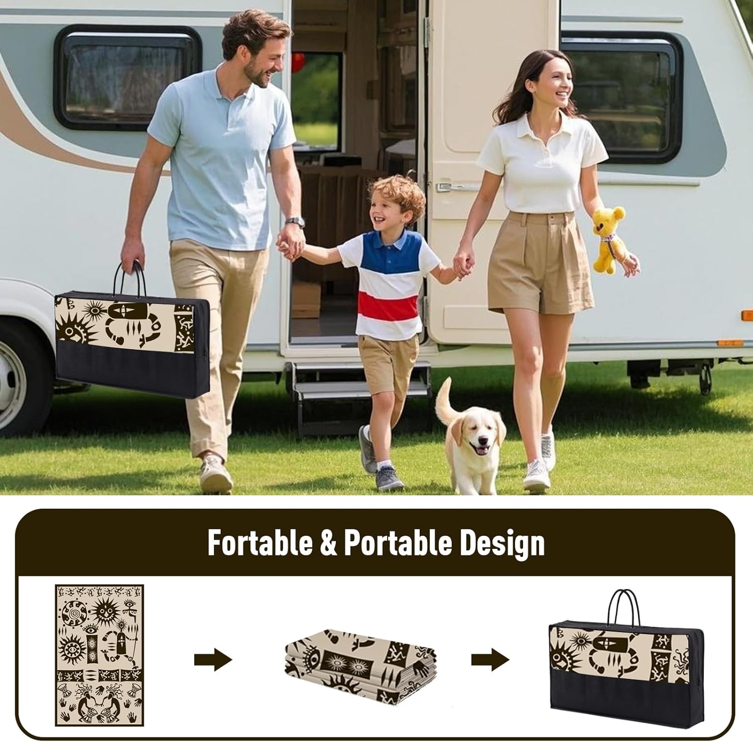 - Portable & Durable: This outdoor plastic rug with seams can be rolled or folded into a compact size and comes with a carrying bag for easy portability. Perfect for outdoor activities, picnics, sunbathing, and RV road trips. The heat-sealed edges prevent wear and tear, withstanding any environment, traffic, or scratches