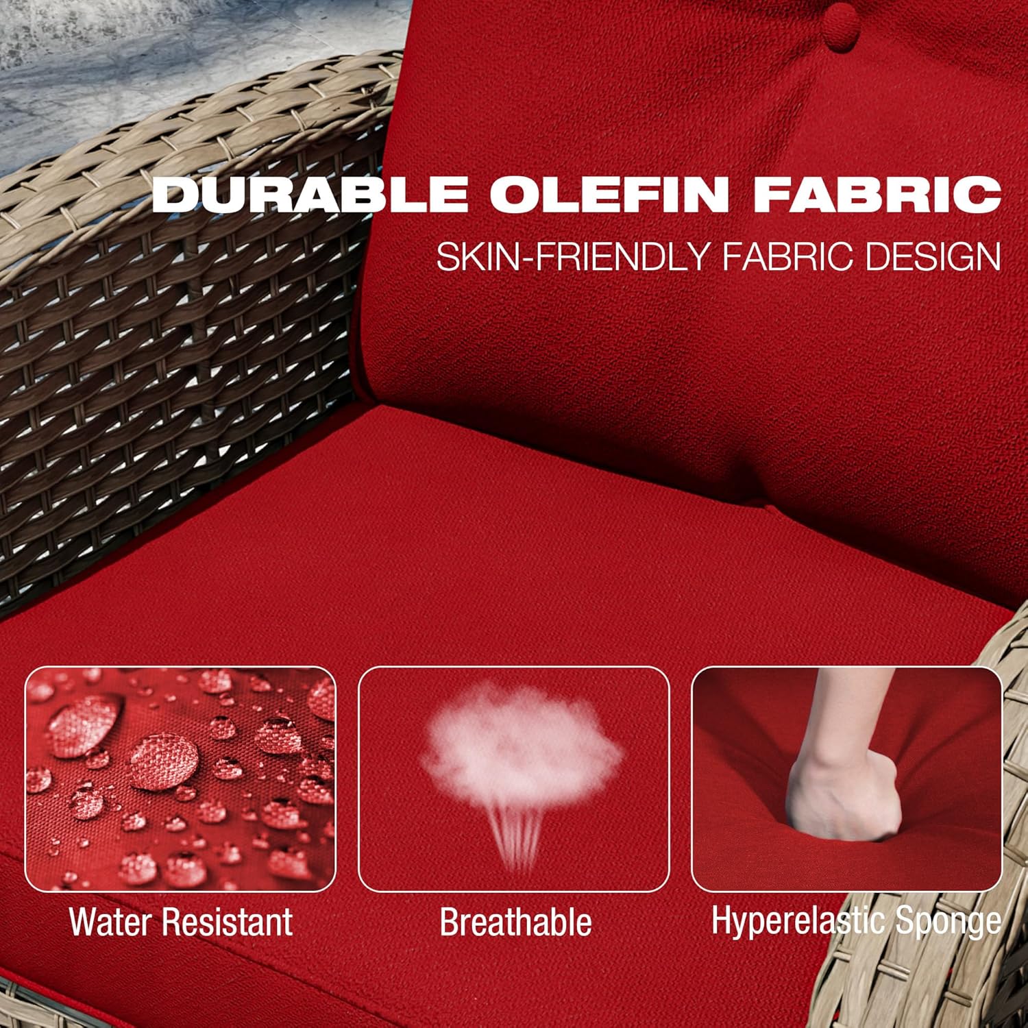 - Comfy Seating: The 25-inch deep seat and 4-inch thick cushion offer an extraordinary seating experience. The cushion is filled with high-density 28D foam, providing the perfect balance between softness and support. Its quick rebound feature ensures lasting shape and comfort