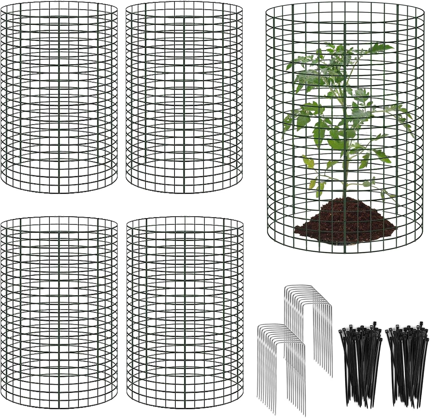 - DIY Plant Cage In Various Shapes: You can assemble 3 mesh into a cylinder assembled plant cage, or 4 pieces into a rectangular protection cage, or even more mesh into a larger plant wire cage to protect your plants from harm, use the wire ties included in the package to tie up, circle the plant and then fix it with metal stakes, very simple to install and easy to use.