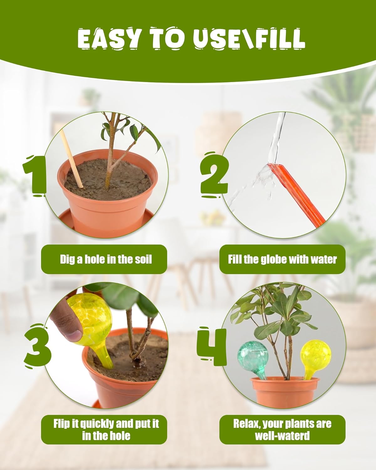 - Effortless Hydration: Keep your indoor plants healthy and hydrated effortlessly with these self-watering bulbs, eliminating the worry of forgetting to water them.