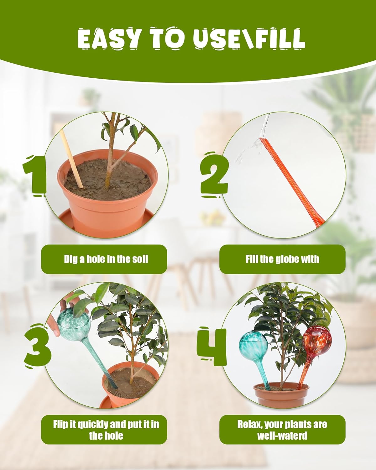 - Effortless Hydration: Keep your indoor plants healthy and hydrated effortlessly with these self-watering bulbs, eliminating the worry of forgetting to water them.