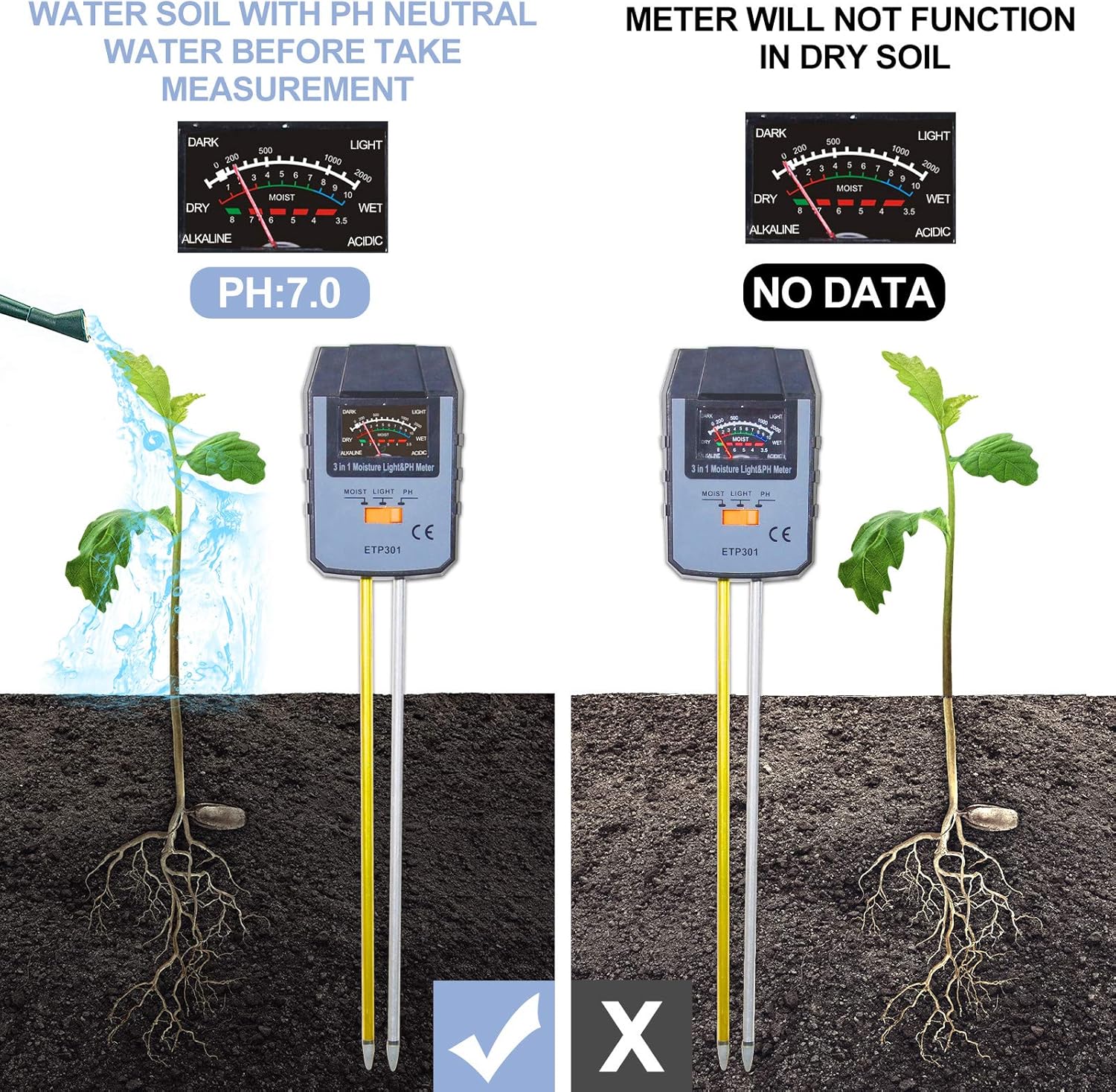 - 3 in 1 Soil Tester is Prevent Overwatering: Accurate moisture readings let you know exactly when to water,make sure you don't over water your plants. Double-needle Detection Technology strongly enhances the speed and accuracy of detecting and analyzing soil moisture and pH acidity.