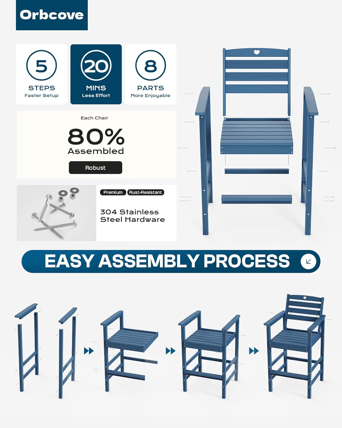 - Hassle-Free Assembly & Maintenance: Quick assembly with clear instructions and included hardware. The waterproof, fade-resistant surface ensures this patio furniture set requires minimal maintenance—just wipe it with soap and water to keep it looking new.