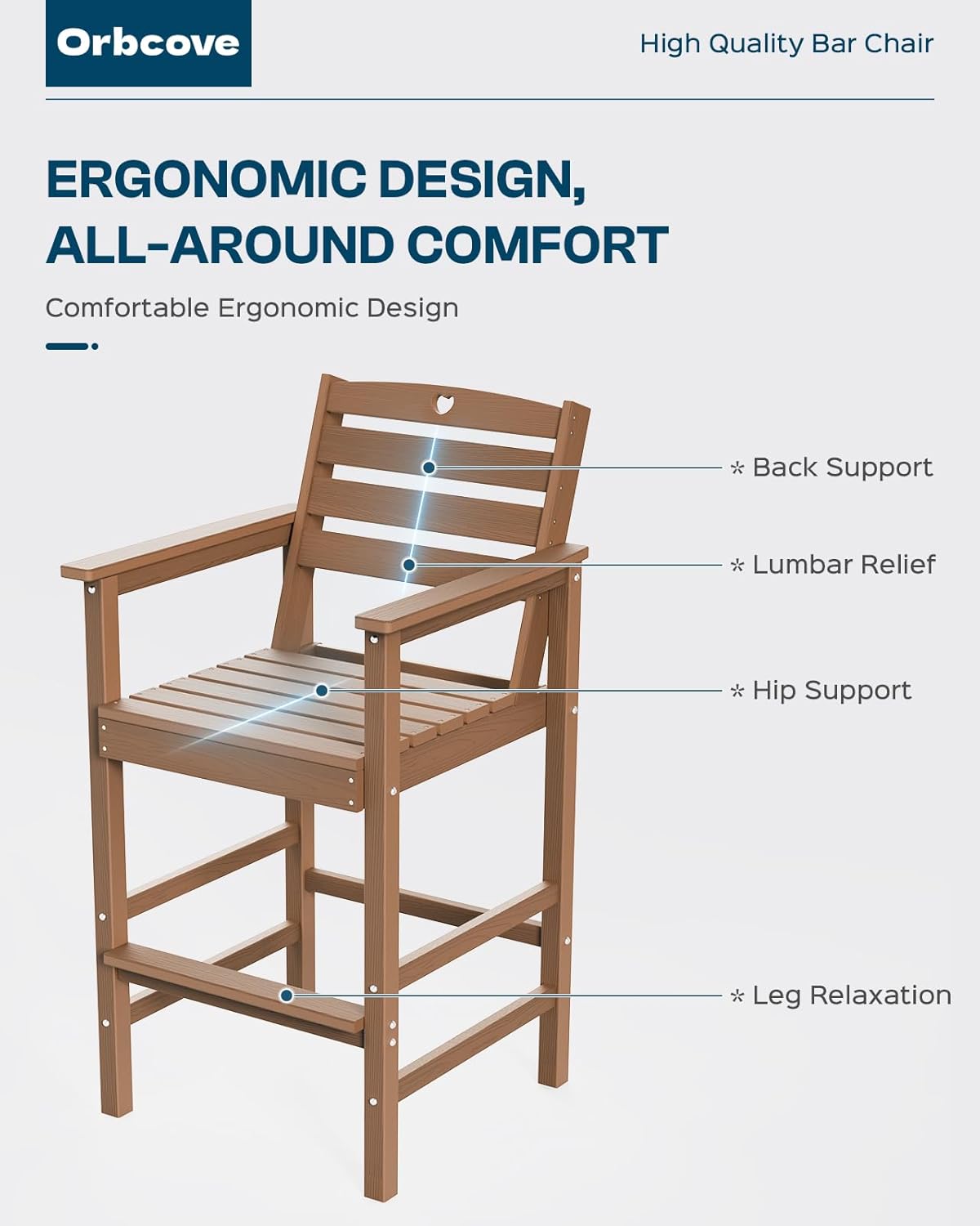- Durable All-Weather Design: (Your order will arrive in two separate shipments, which may not be delivered simultaneously.) Crafted from HDPE with a natural wood grain finish, Orbcove bar table and chairs set withstands sun, rain, and wind without fading or cracking. Ideal for deck furniture, backyard furniture, or porch furniture, it’s perfect for year-round outdoor living.
