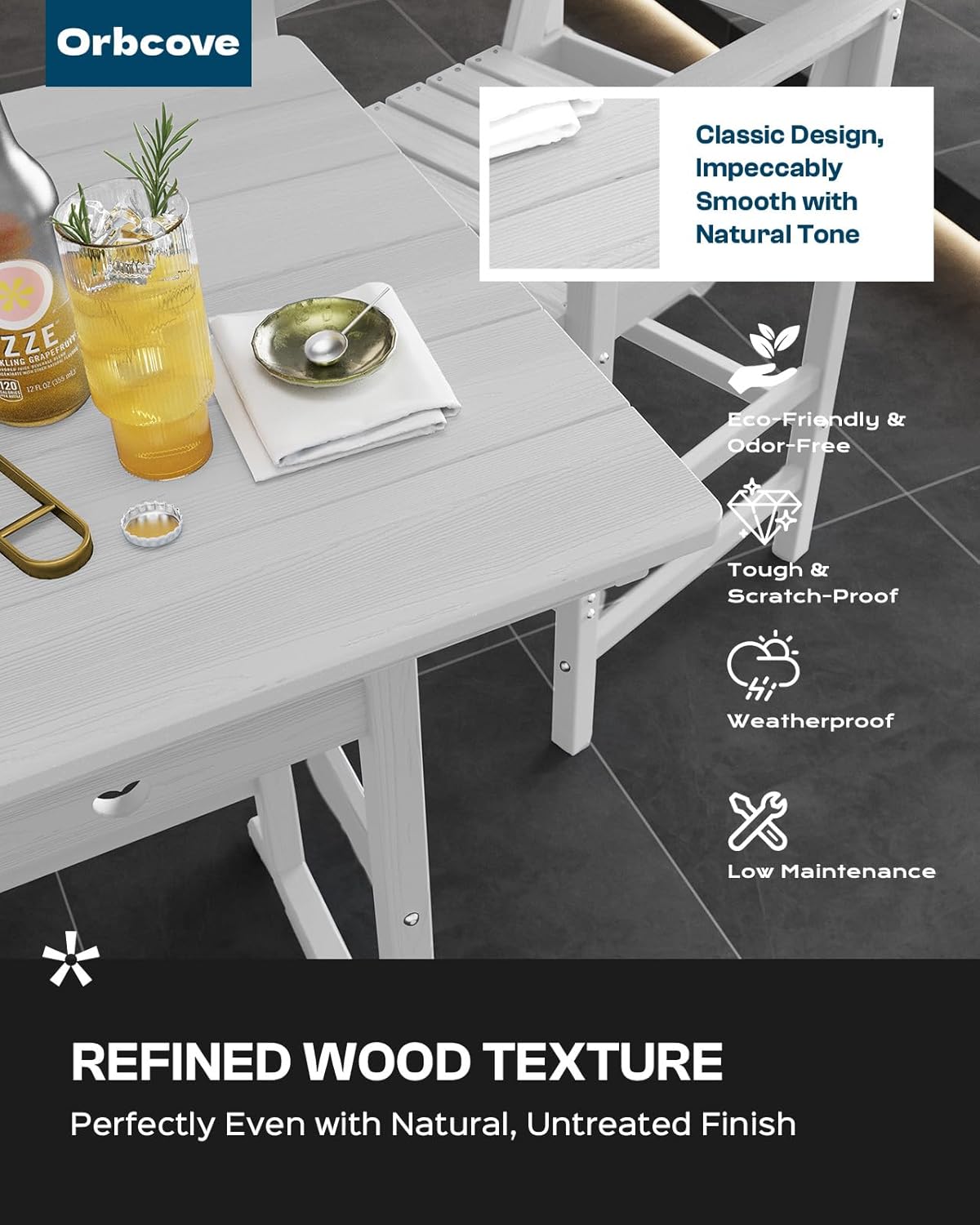- Durable All-Weather Design: (Please note!!!Your order consists of two or three separate packages, which may be delivered at different times.) Crafted from HDPE with a natural wood grain finish, Orbcove bar table and chairs set withstands sun, rain, and wind without fading or cracking. Ideal for deck furniture, backyard furniture, or porch furniture, it’s perfect for year-round outdoor living.