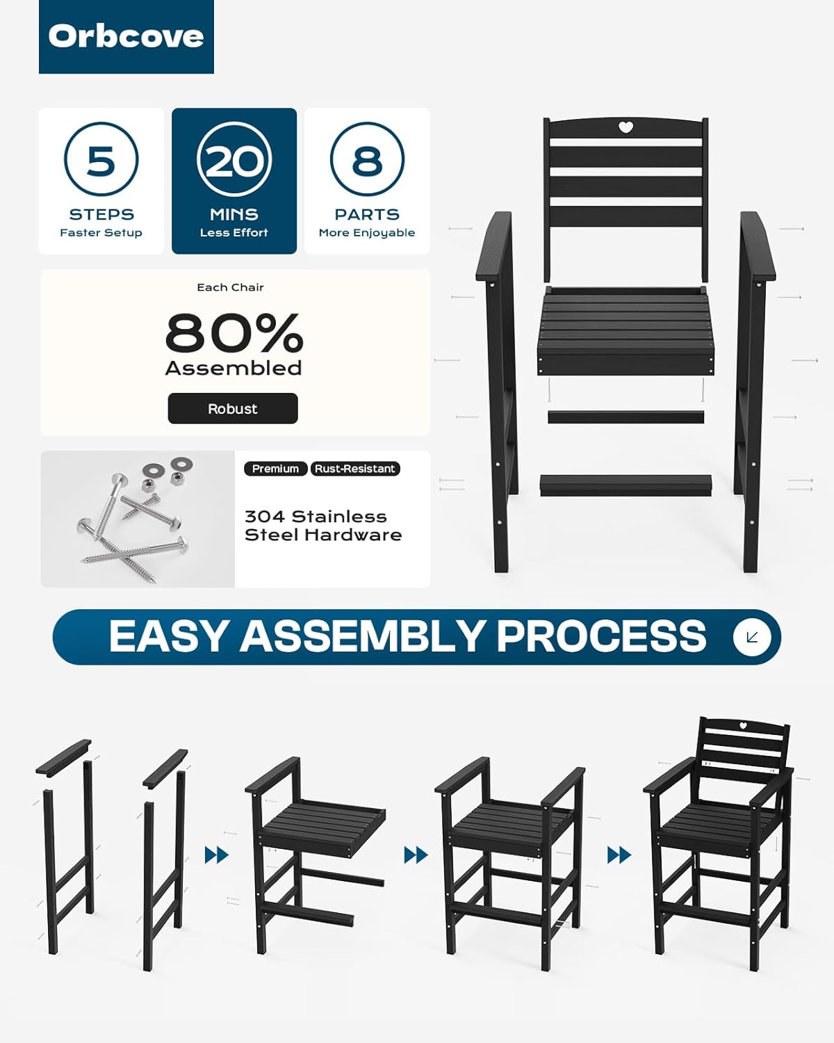 - Durable All-Weather Design: (Please note!!!Your order consists of two separate packages, which may be delivered at different times.) Crafted from HDPE with a natural wood grain finish, Orbcove bar table and chairs set withstands sun, rain, and wind without fading or cracking. Ideal for deck furniture, backyard furniture, or porch furniture, it’s perfect for year-round outdoor living.