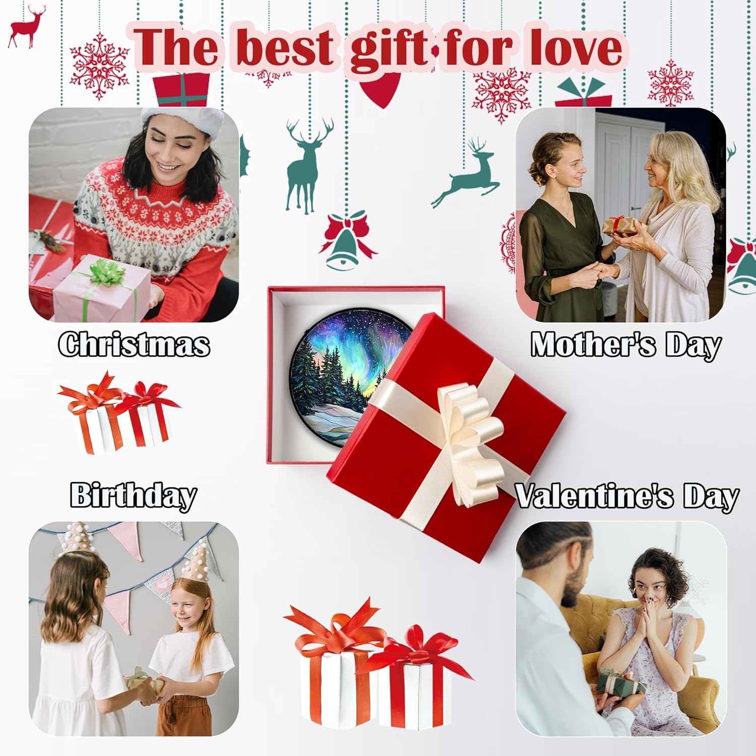Stained Glass Window Hanging, Aurora Landscape Sun Catchers Glass Panel Green Trees Suncatcher Decor for Birthday for Women, Men, Wife, Aunt, and Mom 6.3 in