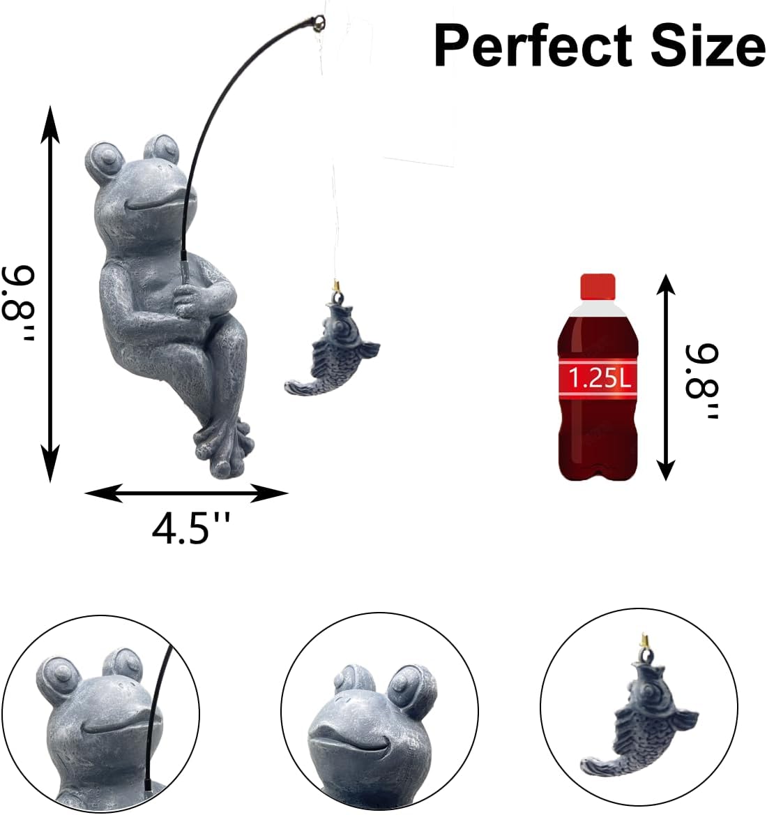 - Compact and Eye-Catching Design: Measuring 9.8"x4.5", this fishing sculpture is the perfect size for any garden decor or small koi pond. Its unique design will stand out, creating a whimsical focal point in your outdoor pond, fence, or table settings.