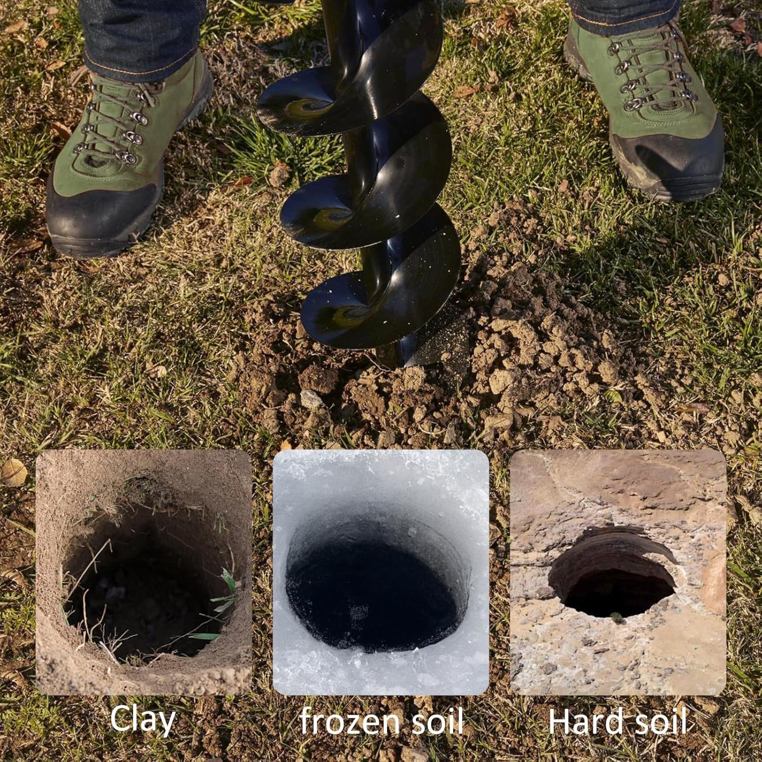 - Multiple Size Drill Bits: Equipped with 4"/ 8" and 12" drill bits and 30" extension rods to meet your different digging requirements. The drill bit equipped is made of solid steel, and the surface is coated with bright black, rust-proof, not easy to deform, and very durable.