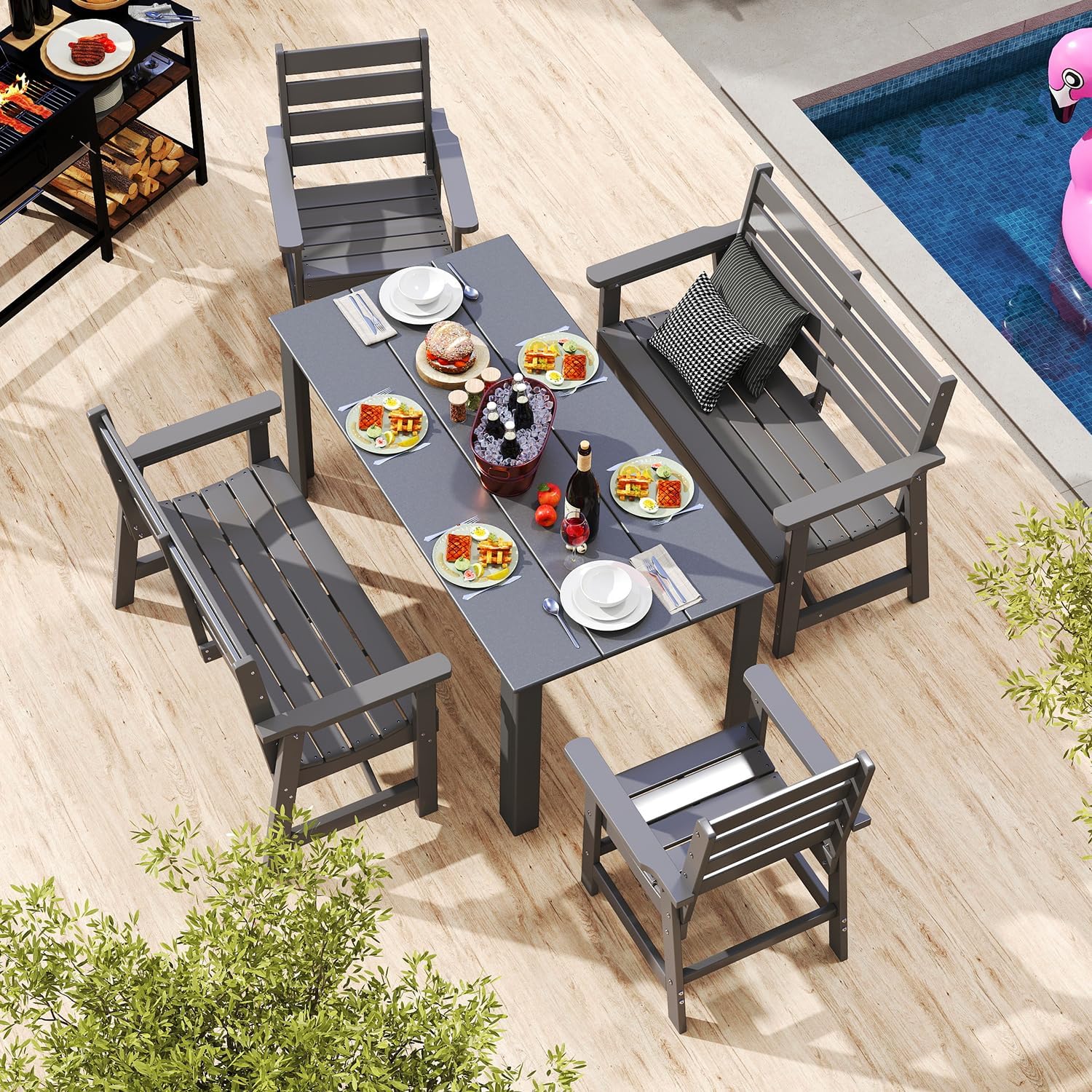 - ăPremium HDPEăCrafted from GreenVines HDPE (High-Density Polyethylene), this outdoor bench outperforms traditional metal and wood materials. It is waterproof, weather-resistant, and fade-resistant, ensuring it wonât rust, chip, peel, crack, or rot, even in harsh outdoor conditions