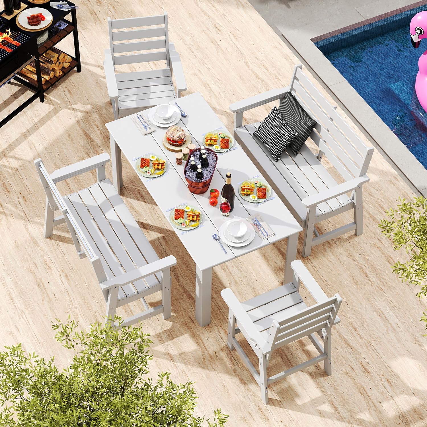 GREENVINES Outdoor Bench | HDPE | Garden Benches | All Weather | for Outdoors Patio Park Porch Outside Backyard | 2-Person | White