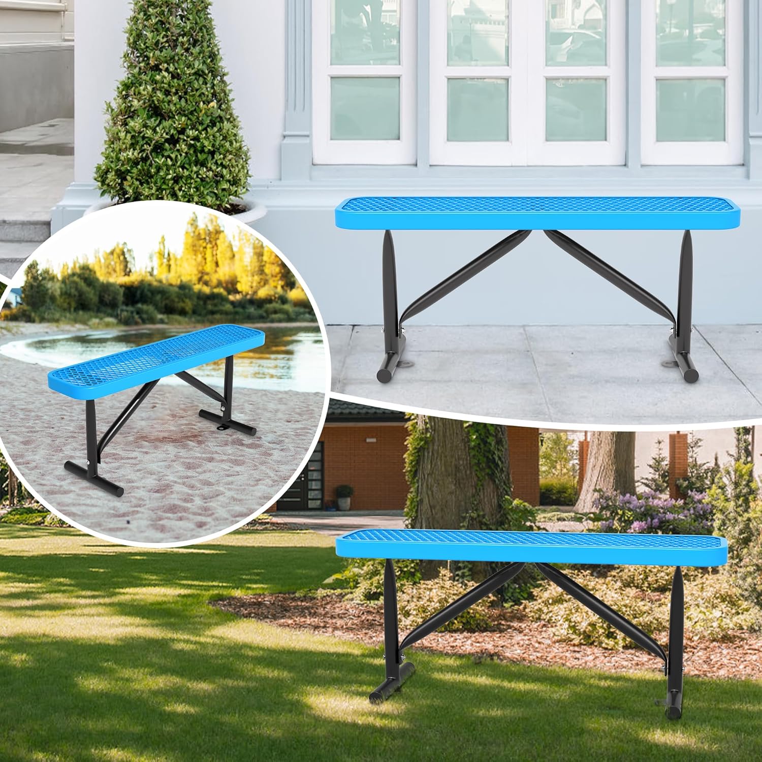 48" L Outdoor Steel Flat Bench, Heavy Duty Metal Park Bench for Outside, Expanded Metal, Commercial Benches Mesh Bench for Shopping Mall, Store, Lawn, Park, Patio, Deck, Garden (Blue, 4FT)