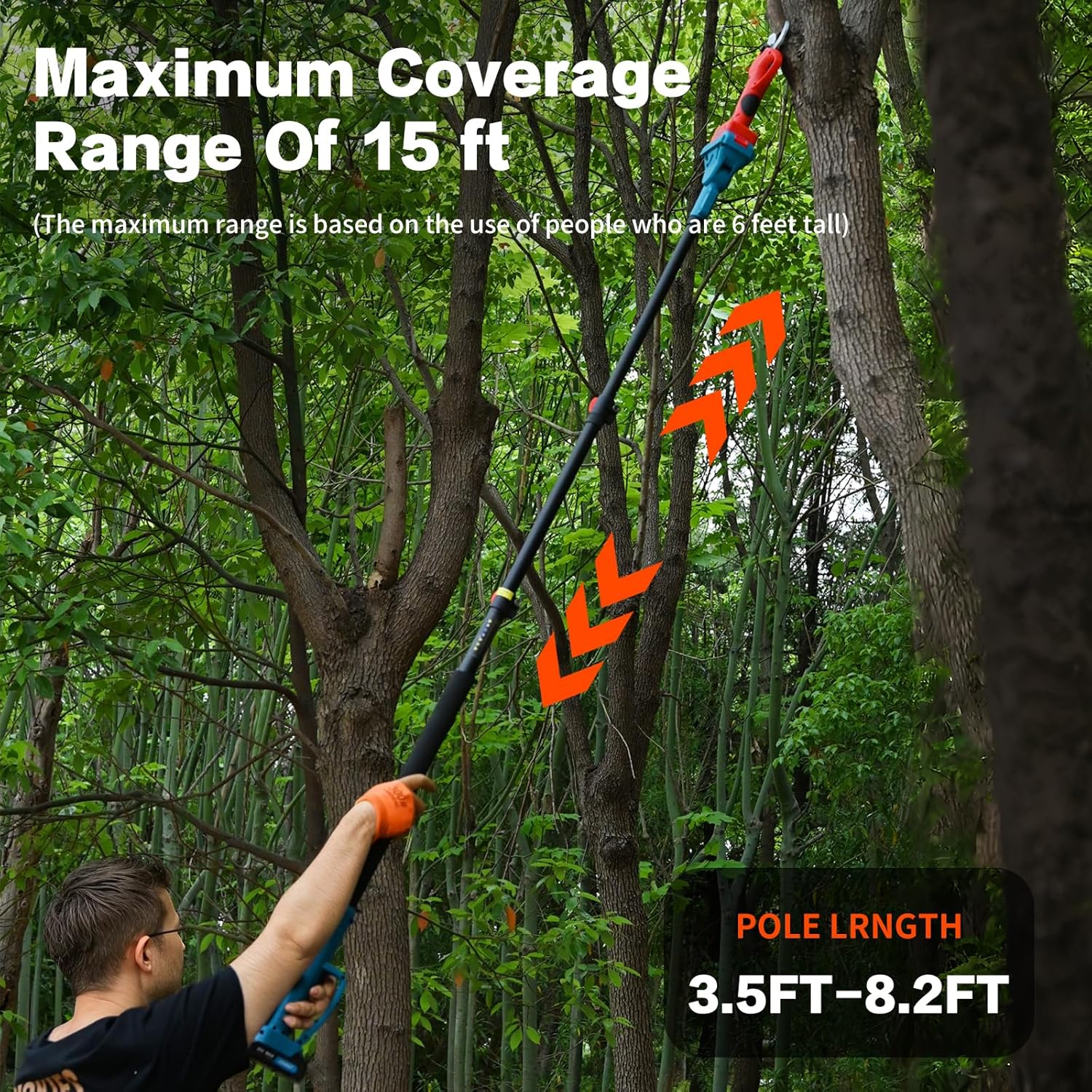 - 2-In-1 Electric Pole Type Electric Clipper:The pole type electric clipper that can trim branches at high altitude and the handheld electric clipper that can trim branches at low altitude can be switched at any time,solving the problem of working in high altitude or narrow areas.