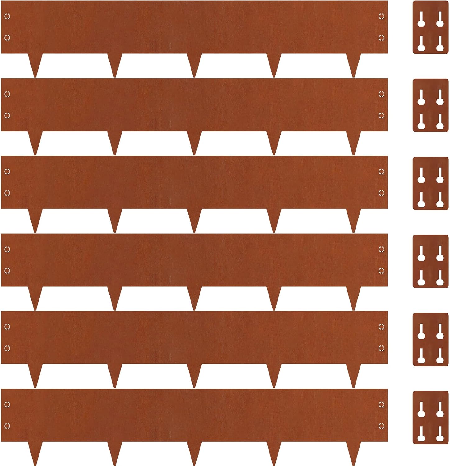 Co-rten Steel Landscape Edging 10" H x 40" L, 6 Pack Heavy Duty Metal Garden Edging, 20Ft Pre-Rustyed Steel Edging, Bendable Metal Edging for Landscaping, Yard, Tree, Flower Bed