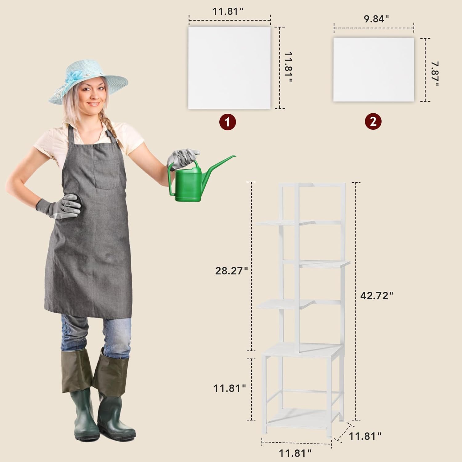 - [Space-Saving Corner Design] Maximize space with this 5-tier corner plant stand, perfect for indoor plant stand or plant shelf.The assembly size is: 11.81L*11.81W*42.72H in