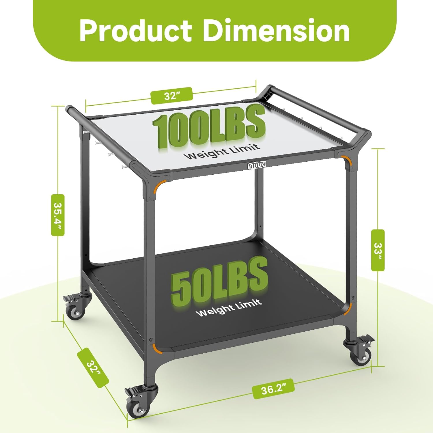 NUUK Grill Cart for Outdoor 32" x 32" Stainless Steel Pizza Oven Table with Double-Shelf Rolling BBQ Kitchen Food Prep Cart for Garden Patio