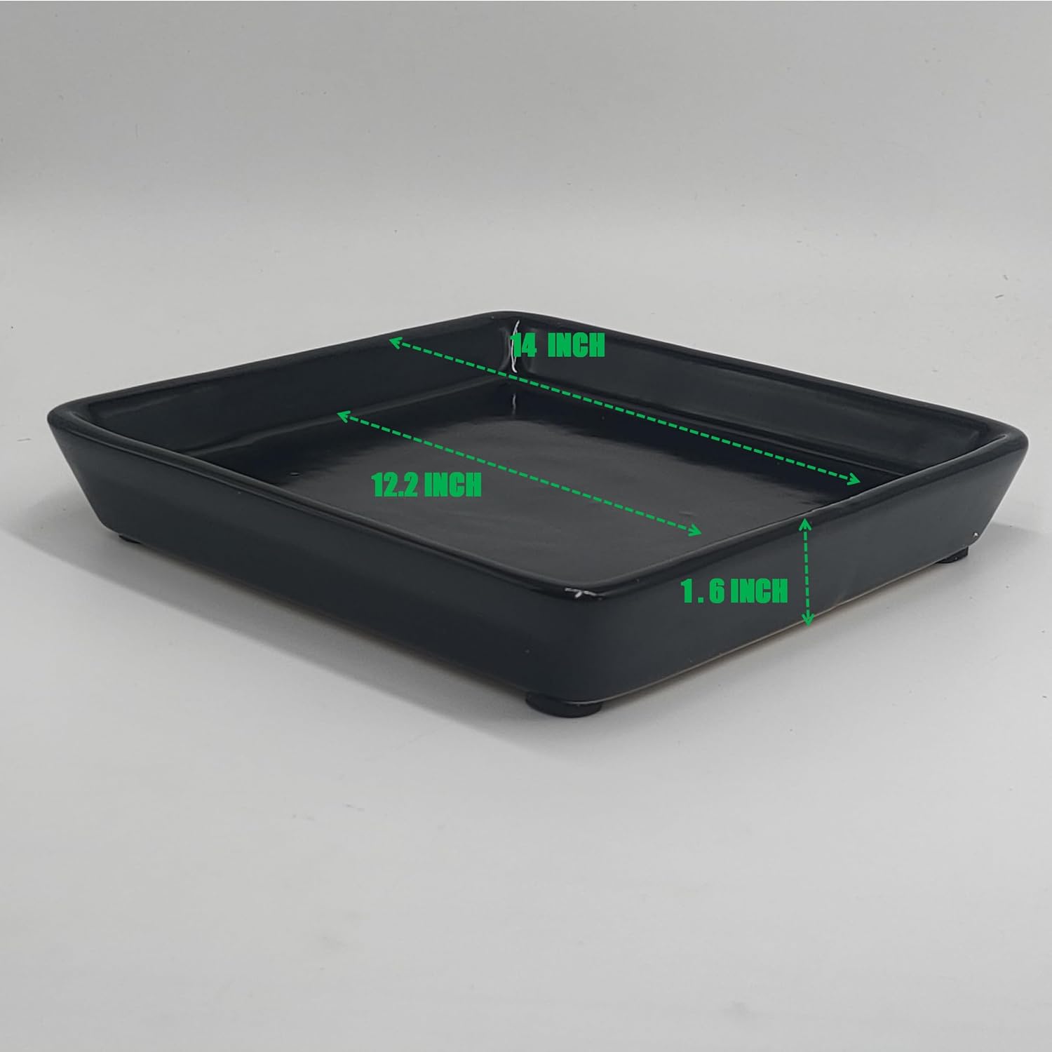 Square Plant Saucer 14 Inch 1 Pack,Plant Trays for Pots, Black Ceramic Plant Saucers for Indoors Outdoors, Plant Drip Tray 4 6 8 10 12 14 Inch