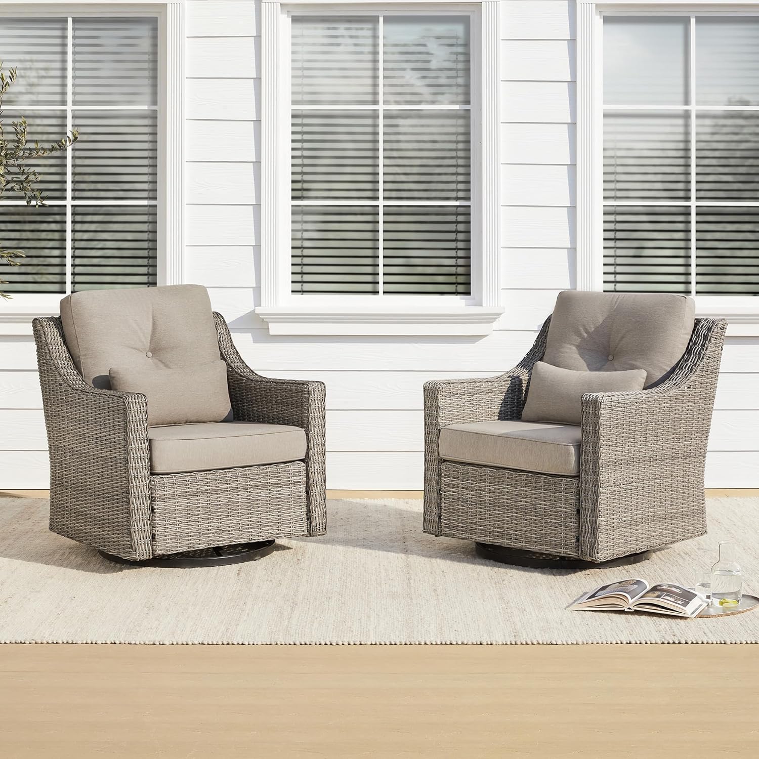 CHITA 2 Pieces Patio Wicker Chairs, 360° Rocking Swivels Outdoor Rattan Chair with Thickened Cushions for Backyard, Poolside, Garden or Porch