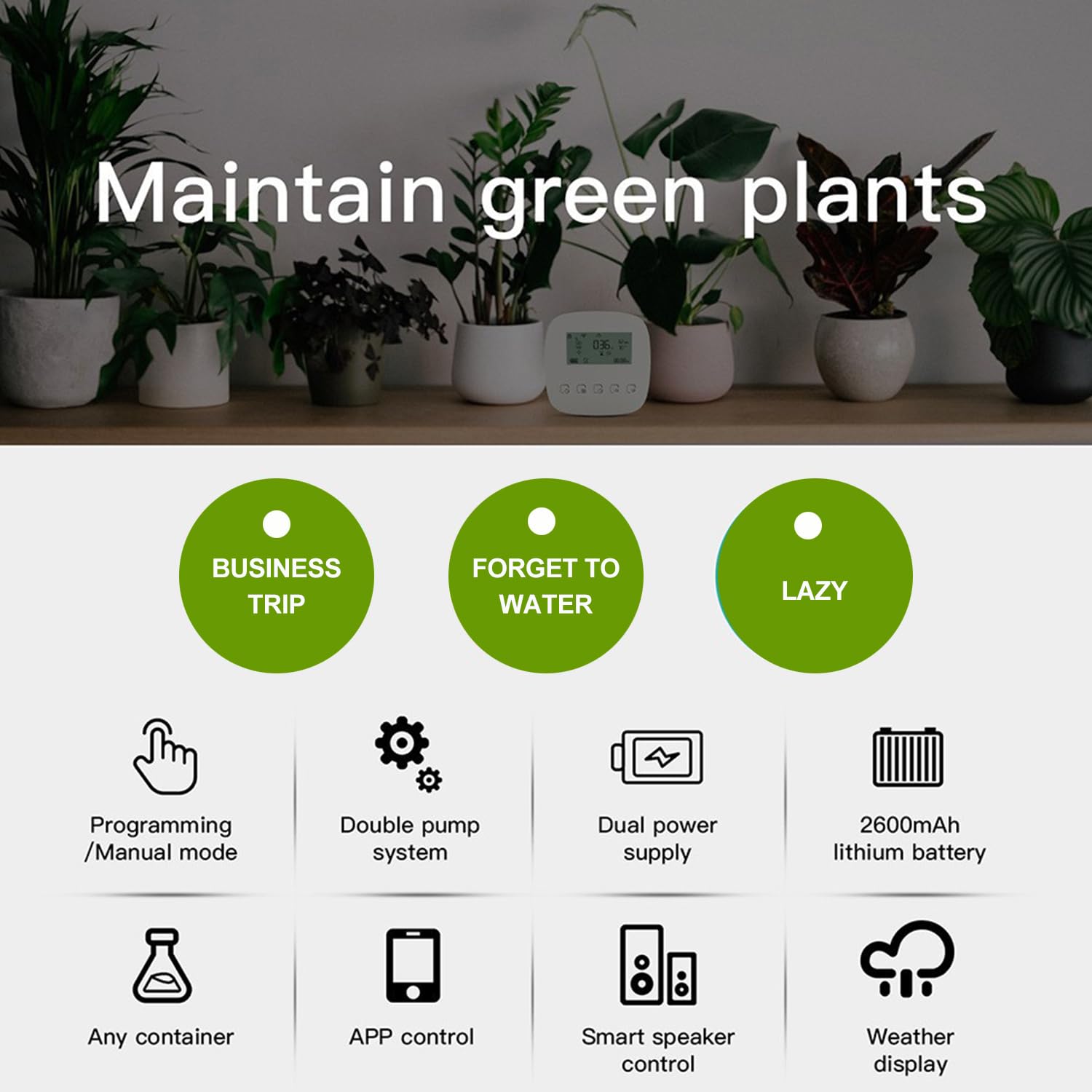 - Strong Water Pressure and Stability:The system has excellent stability and strong water pressure Dual pump operation, able to deliver water to up to 15 pots, even if the plants are far away from the water source can get enough water supply.0305-3