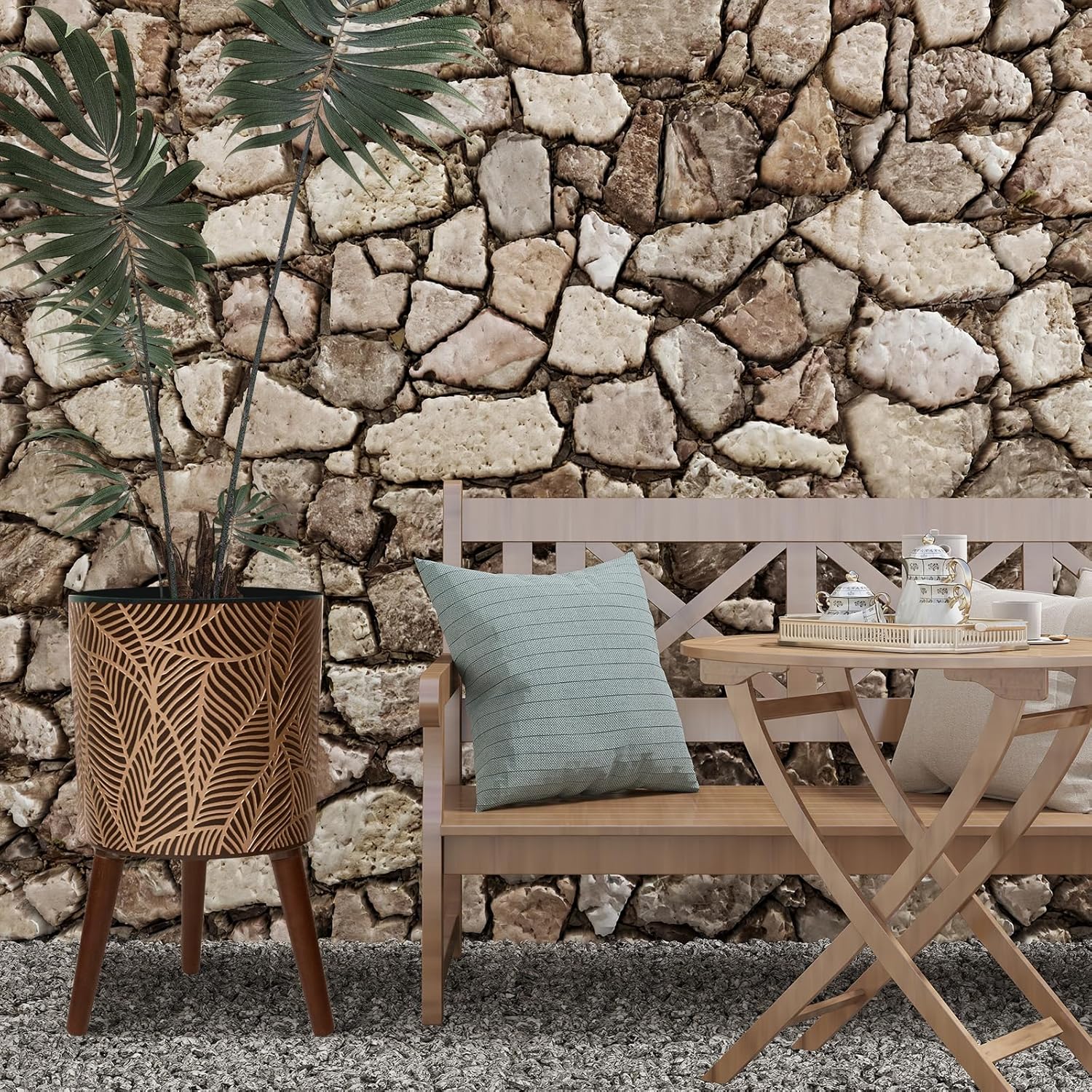 - Durable and Stylish Stand:Includes a sturdy wooden plant stand that adds both height and stability—perfect for showcasing tall plants, indoor greenery, or trailing vines in your favorite planter.