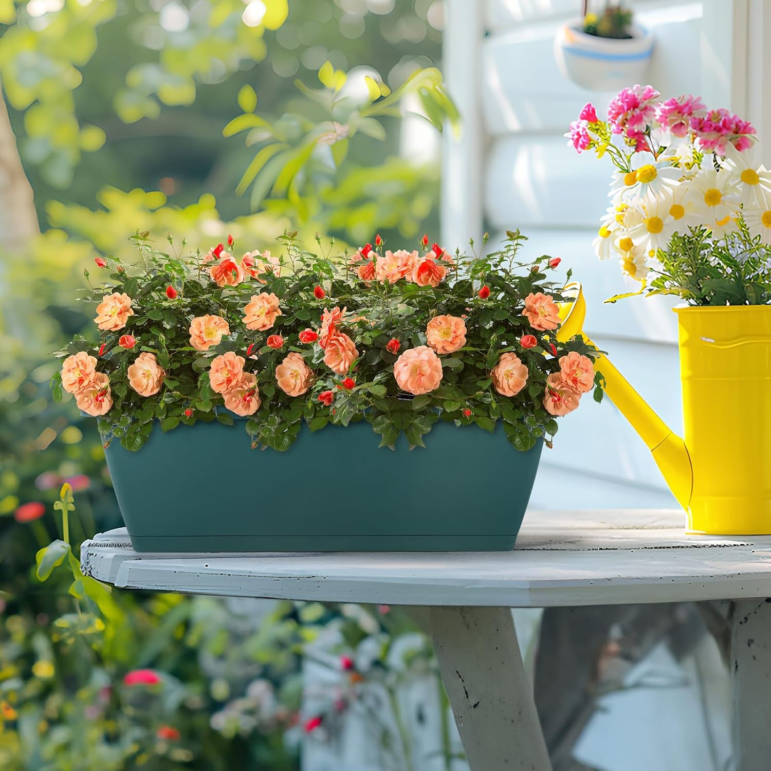 - Ideal for Plant Display:This rectangular window planter box have a stylish and beautiful look ,fit on most windowsills, balconies, fence,garden and other areas. The railling planter boxes can grow colourful flowers,Fresh veggies, salad garden, and much more.Enjoy a lush indoor outdoor garden view from your window.