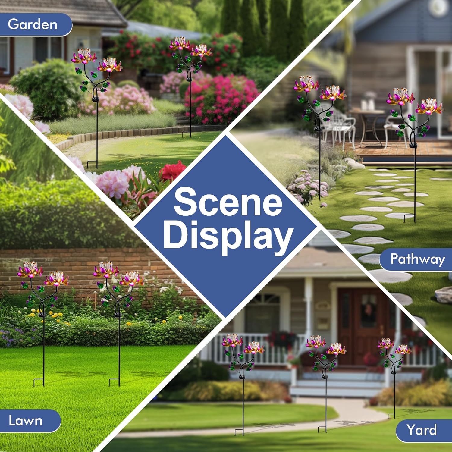 - STANDING STABLE: The metal stake of the solar weathervane has two sturdy metal spikes to ensure that the weathervane will stand up even in strong winds, allowing you to enjoy the graceful spinning of the flowers. The blades are also coated with a durable rust-resistant paint to withstand all weather conditions.